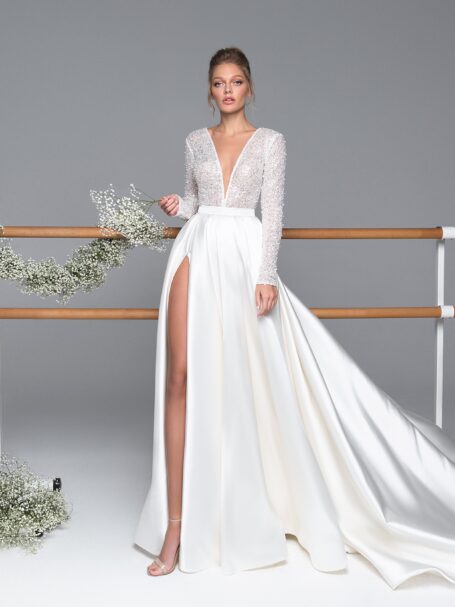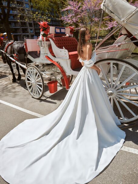 – Chic and tasteful A-line cuts, combining airy, full skirts with stunning necklines that will make you either a princess or a glamorous diva;