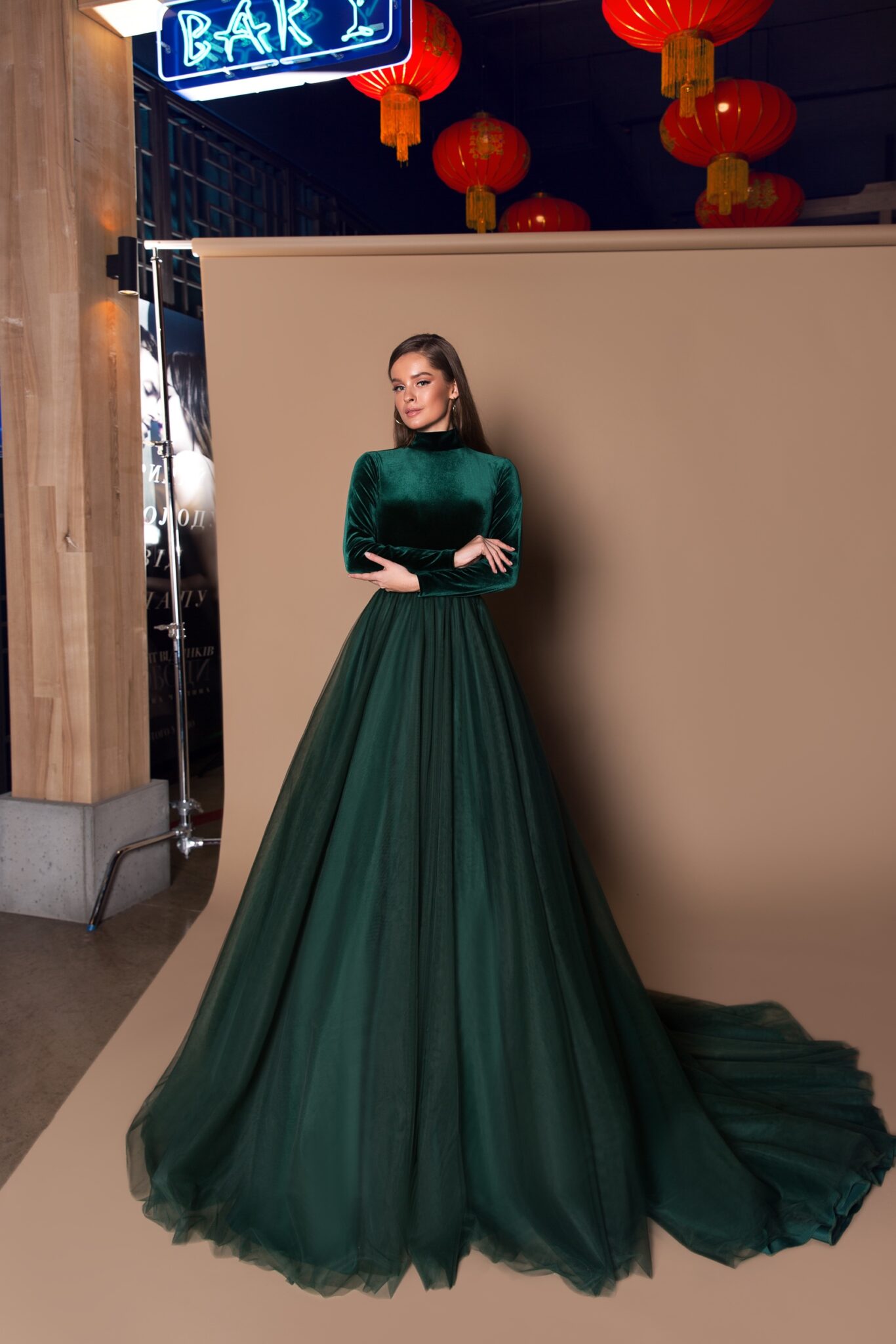 Cinema NightCrafted for those with an exquisite taste, the 18111 evening dress with its tulle, velvet and a-line silhouette is the perfect attire for a grand soir_e.