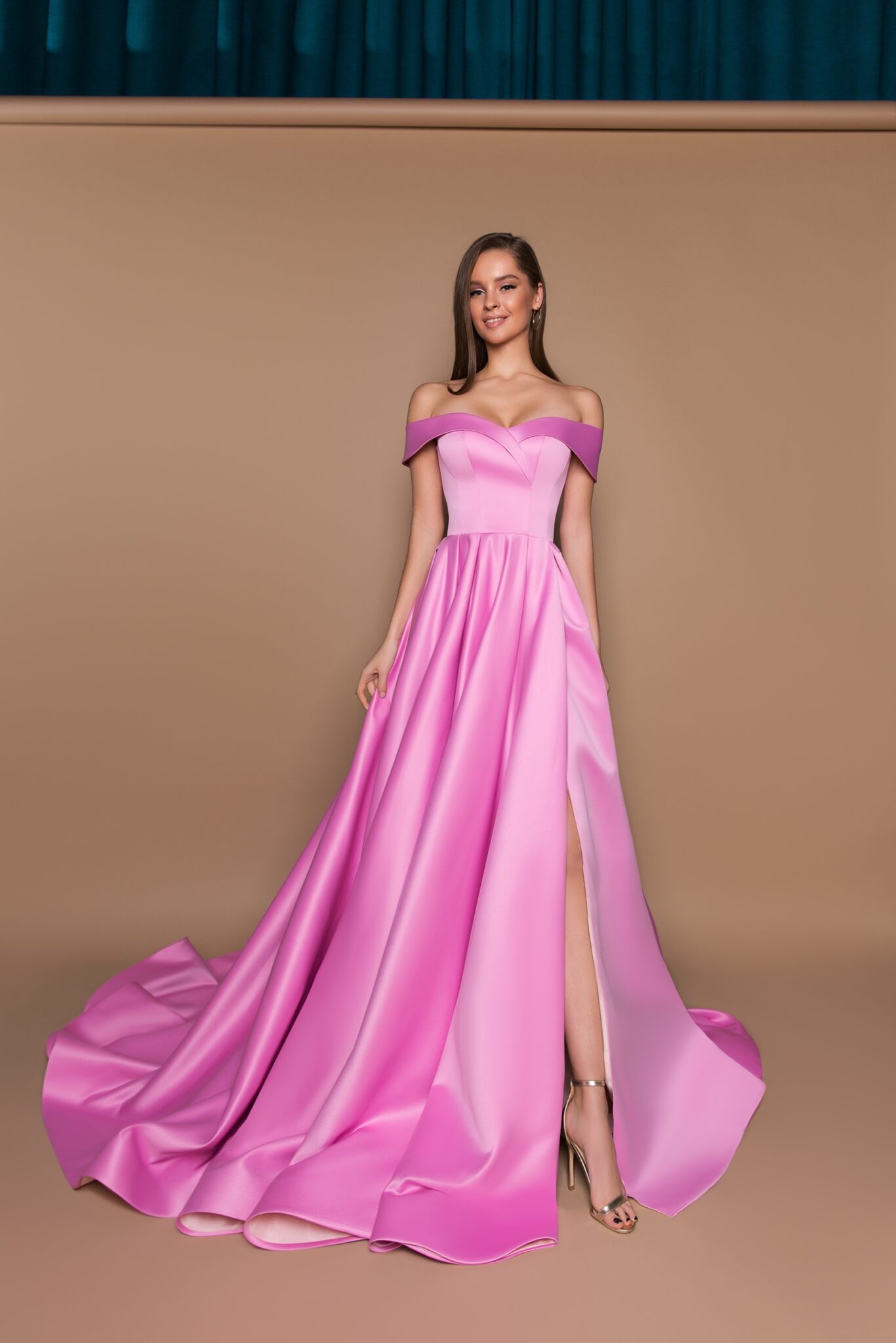 Cinema NightEmbrace the limelight with the 18123 evening dress. Its rich satin combined with the a-line silhouette ensures you’re the talk of the town.