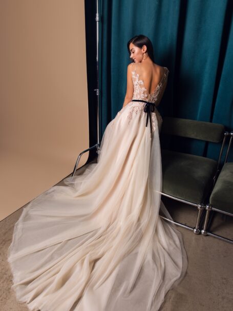 Cinema NightTurn heads as you step in wearing the 18127. Its lavish tulle and a-line silhouette are sure to make you the highlight of the evening.
