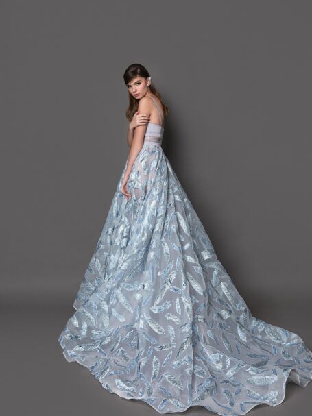 Glam VibesThe 19105 is an embodiment of modern luxury. Its fine sparkle combined with the a-line silhouette makes it a true masterpiece.