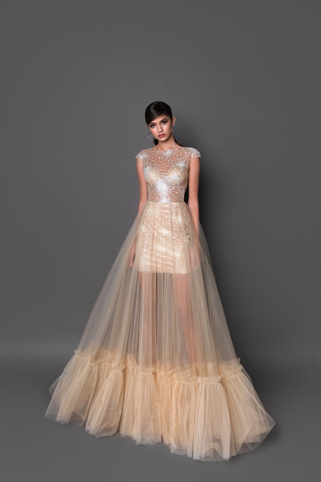 Glam VibesEmbrace the evening in style with the 19203. Its rich sparkle, tulle paired with the a-line silhouette is the very definition of timeless elegance.