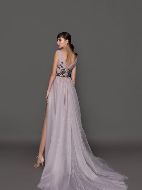 Floor length evening dress «19216» with open back