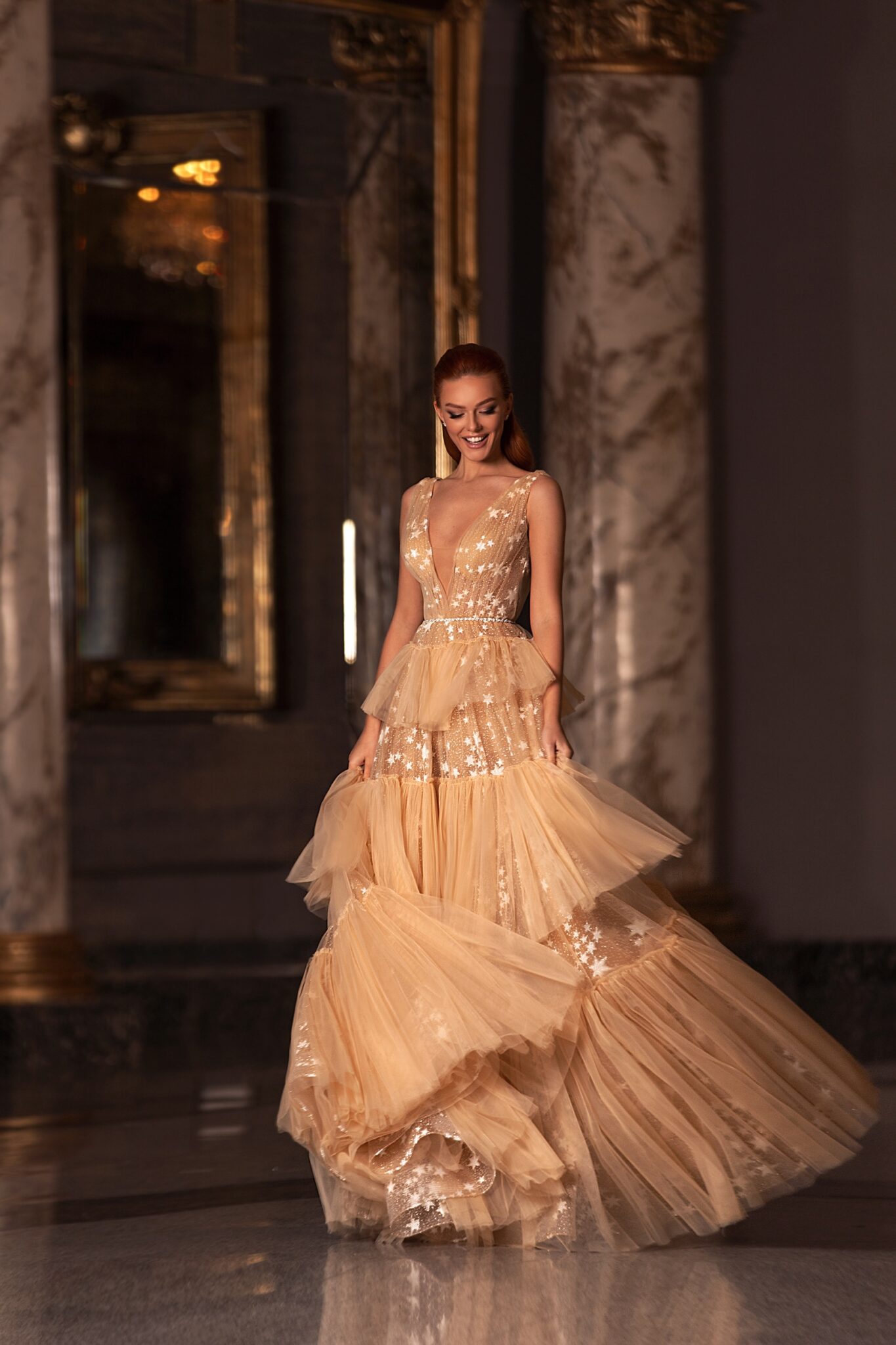 EuphoriaDazzle the room as you step in wearing the 20307. The sparkle, tulle fabric combined with its a-line silhouette is sure to make you the evening’s shining star.