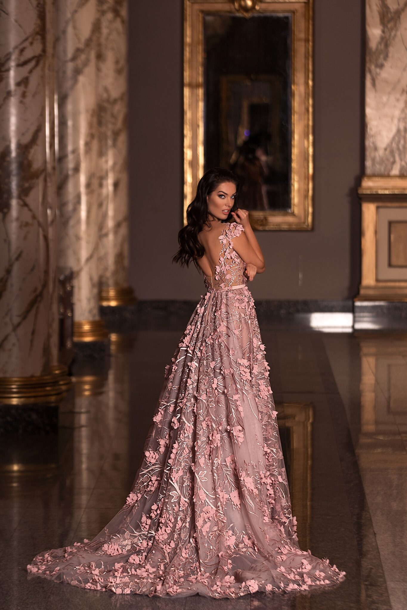 Floor length evening dress «20311» with open back