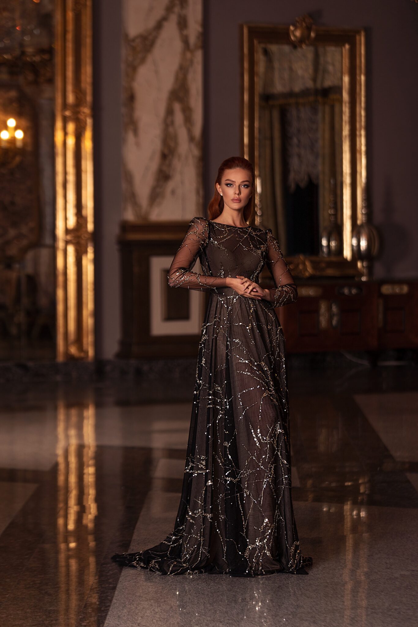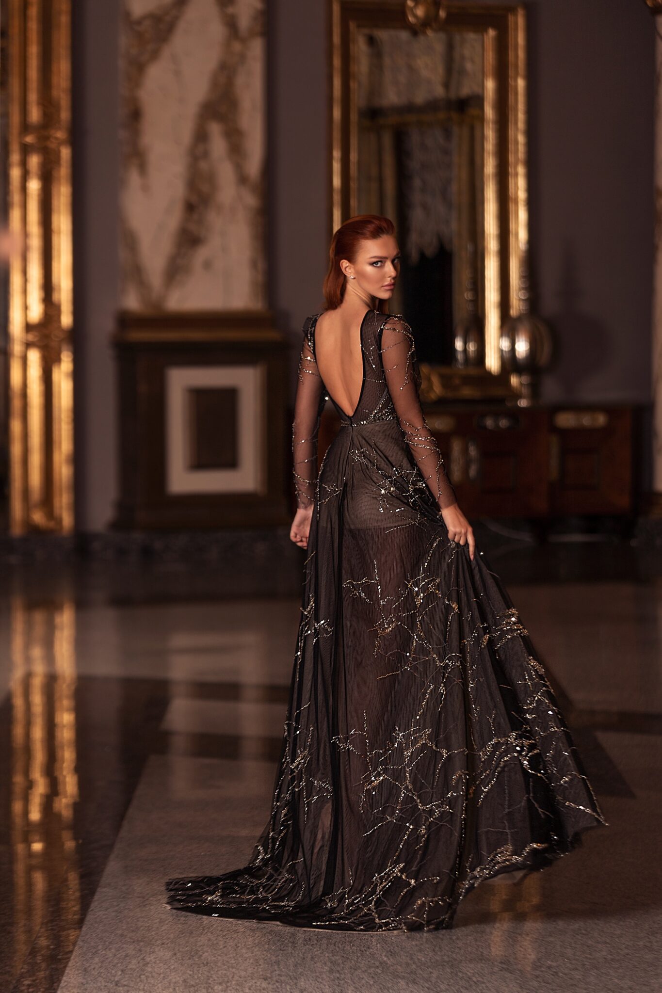 Floor length evening dress «20319» with open back
