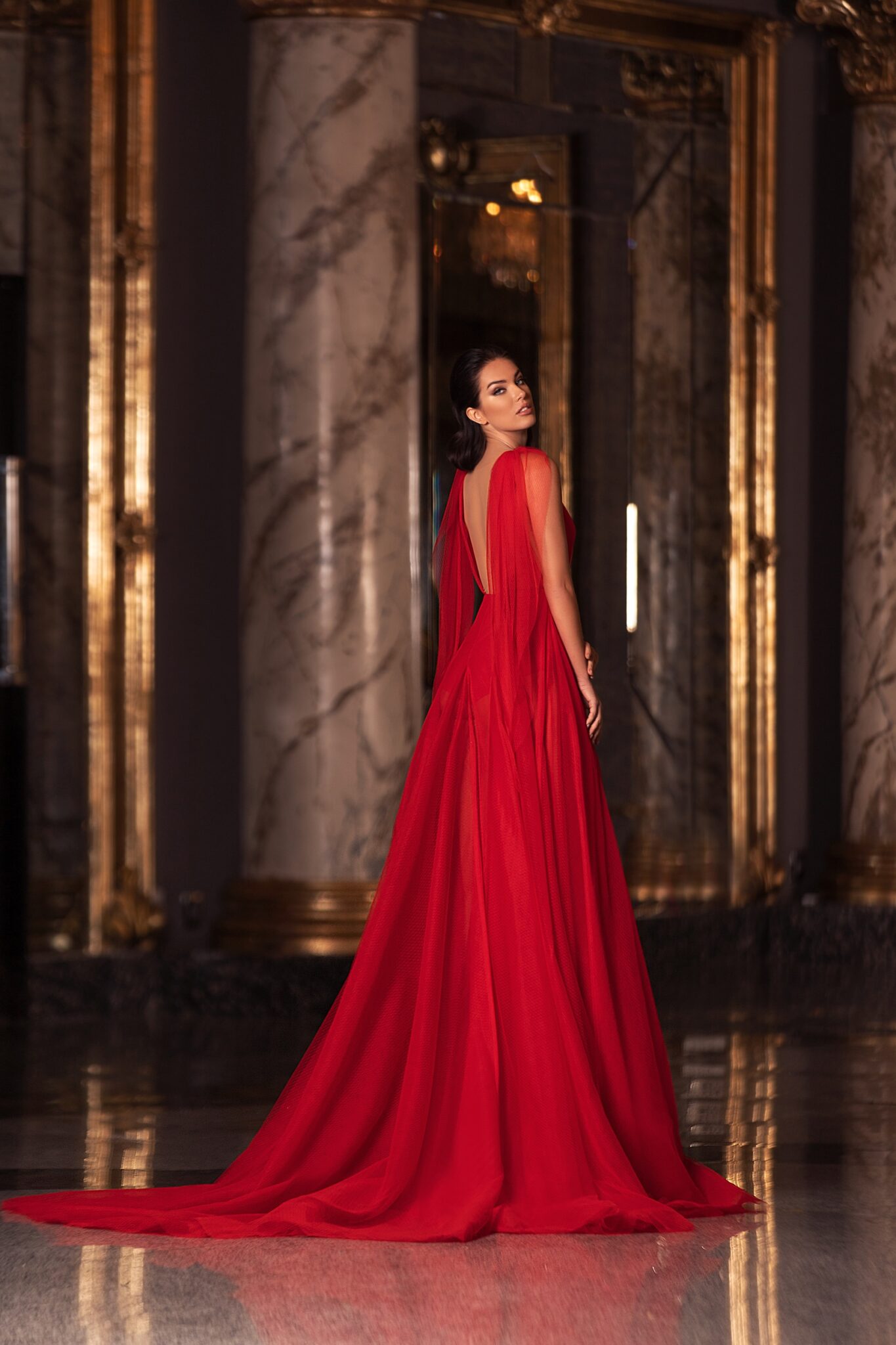 Floor length evening dress «20401» with open back