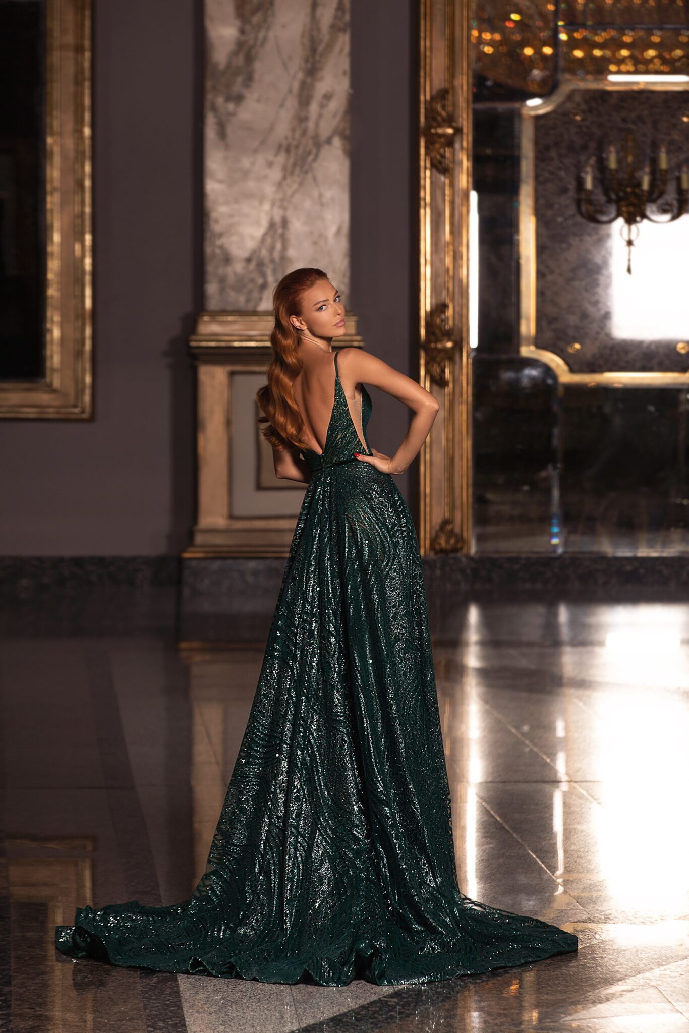 Floor length evening dress «20609» with open back
