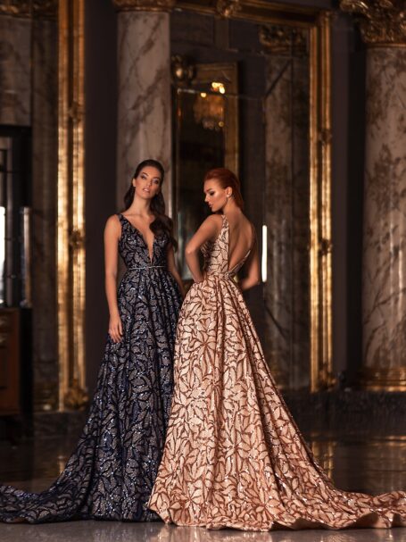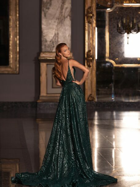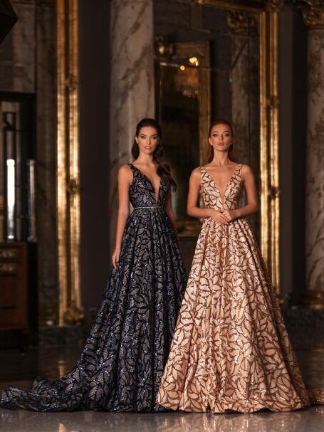 EuphoriaWith the 20610, make every entrance grand. The luxurious sparkle, velvet paired with its sheath silhouette makes it an unparalleled piece of art.