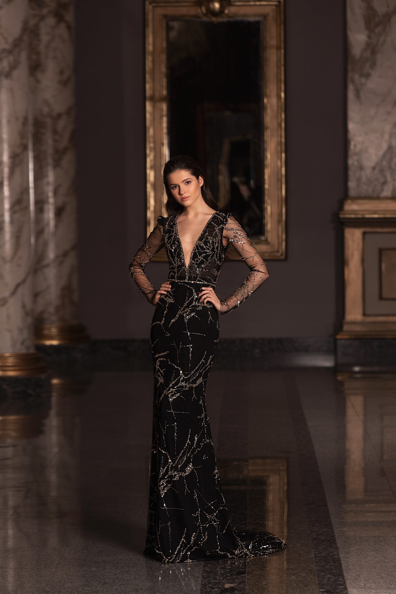 EuphoriaMake a statement with the 20614. Its luxurious sparkle, velvet and sheath silhouette are the epitome of evening glamour.