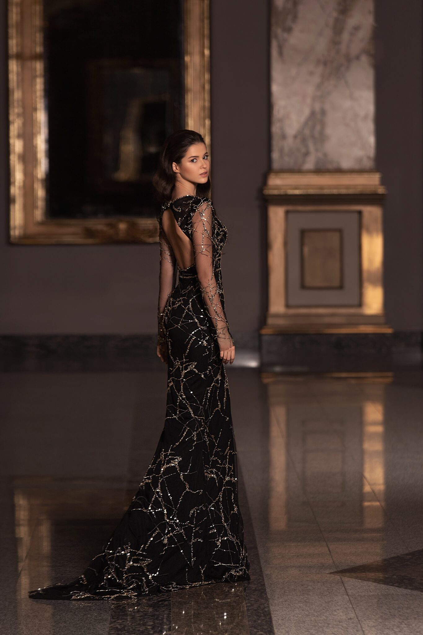 Floor length evening dress «20614» with open back