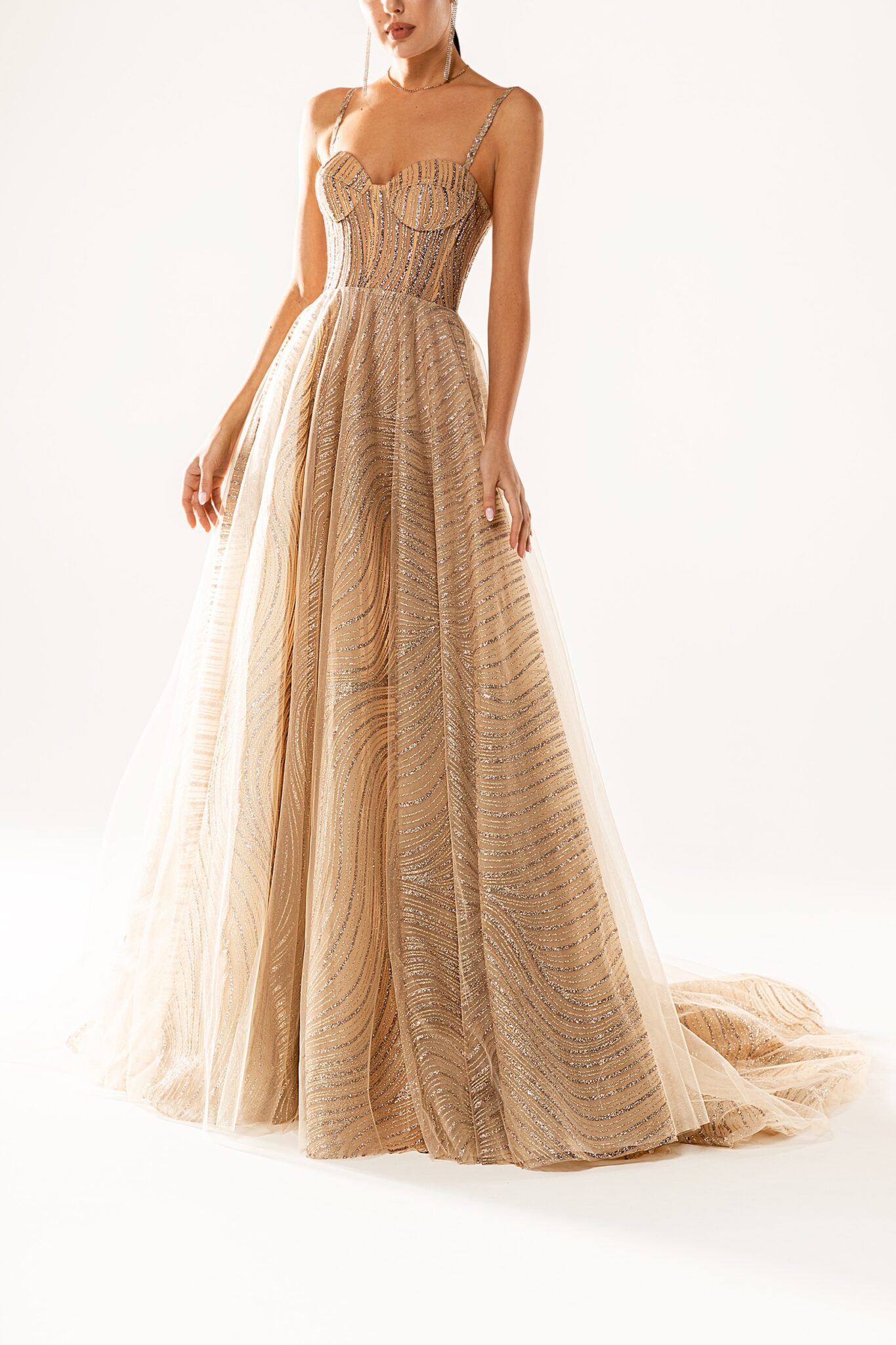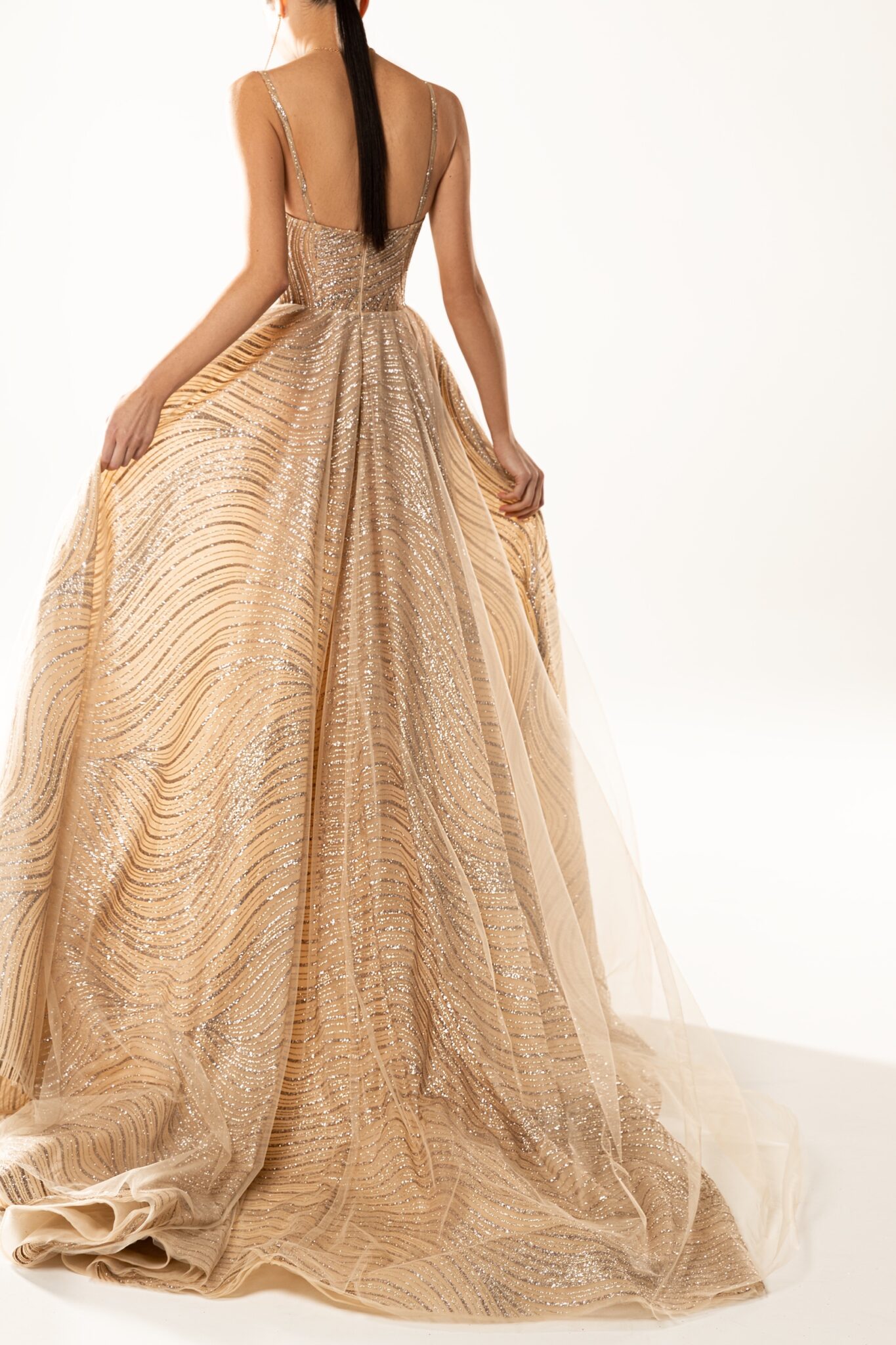 SS2021 Evening CollectionCrafted for those with an exquisite taste, the 21102 evening dress with its sparkle, tulle and a-line silhouette is the perfect attire for a grand soir_e.