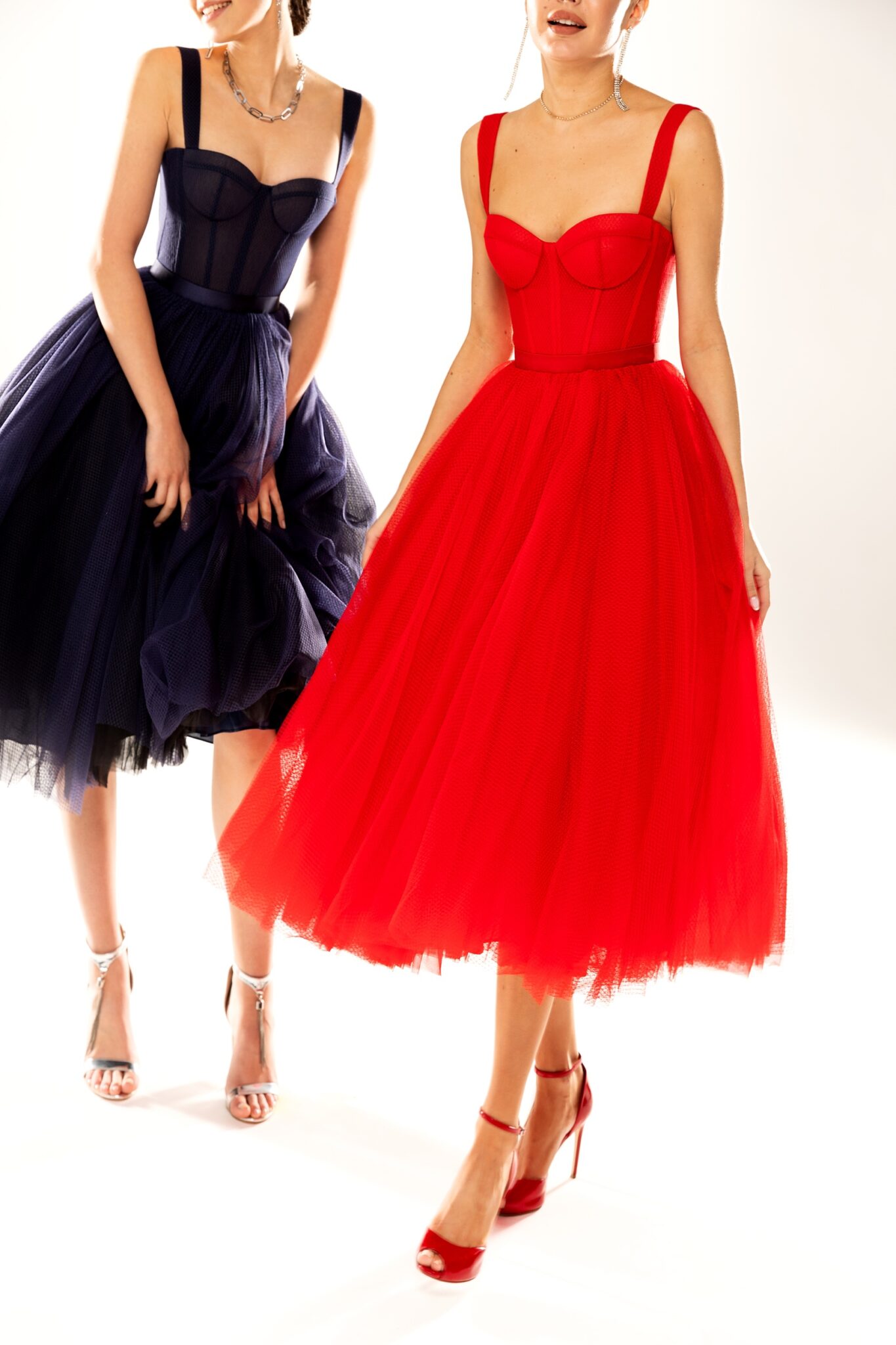 SS2021 Evening CollectionWith the 21105, make every entrance grand. The luxurious tulle paired with its a-line silhouette makes it an unparalleled piece of art.