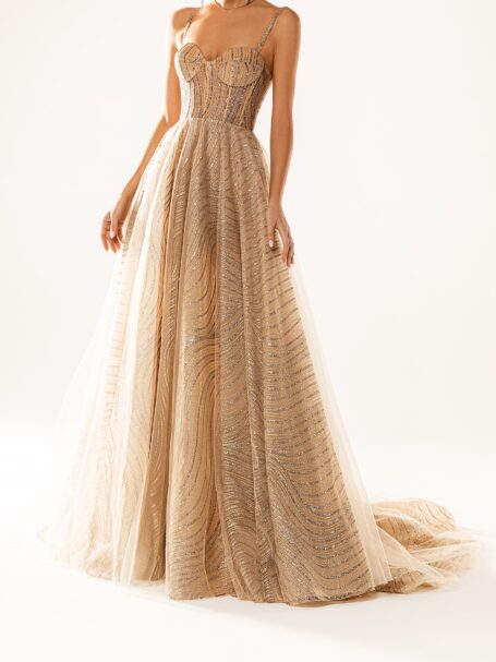 SS2021 Evening CollectionThe 21114 promises an evening of elegance and charm. With its tulle fabric and a-line silhouette, it’s a dress fit for fashion royalty.