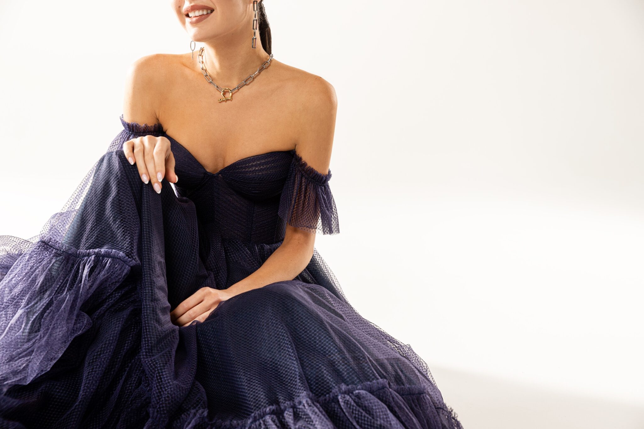 SS2021 Evening CollectionThe 21114 promises an evening of elegance and charm. With its tulle fabric and a-line silhouette, it’s a dress fit for fashion royalty.