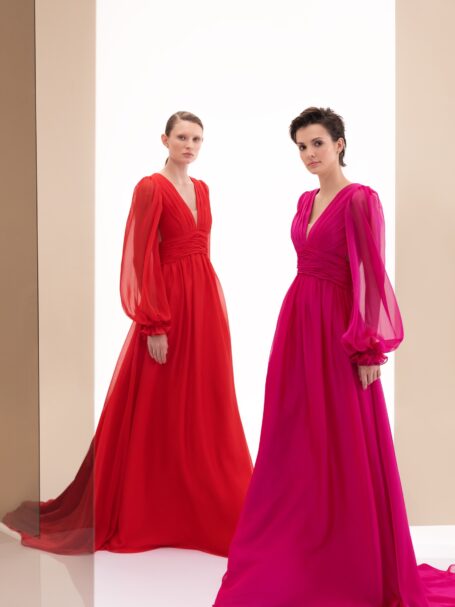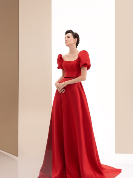 SS2022 Evening CollectionExperience luxury like never before with the 22102 evening gown. Crafted in exquisite mikado silk, its a-line silhouette promises elegance in every detail.