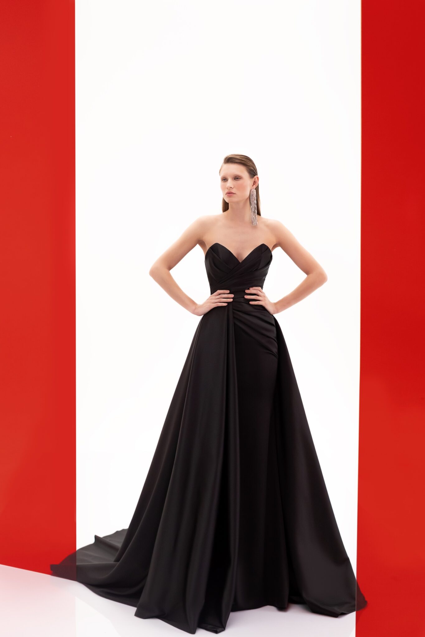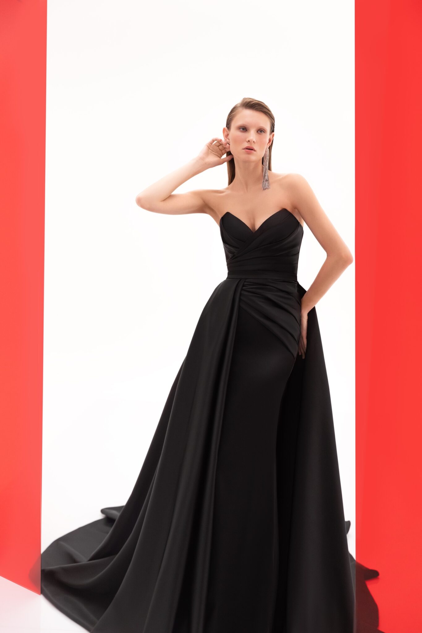 SS2022 Evening CollectionDesigned for the modern woman, the 22103 with its rich satin and fitted with overskirt silhouette is the perfect blend of tradition and modernity.