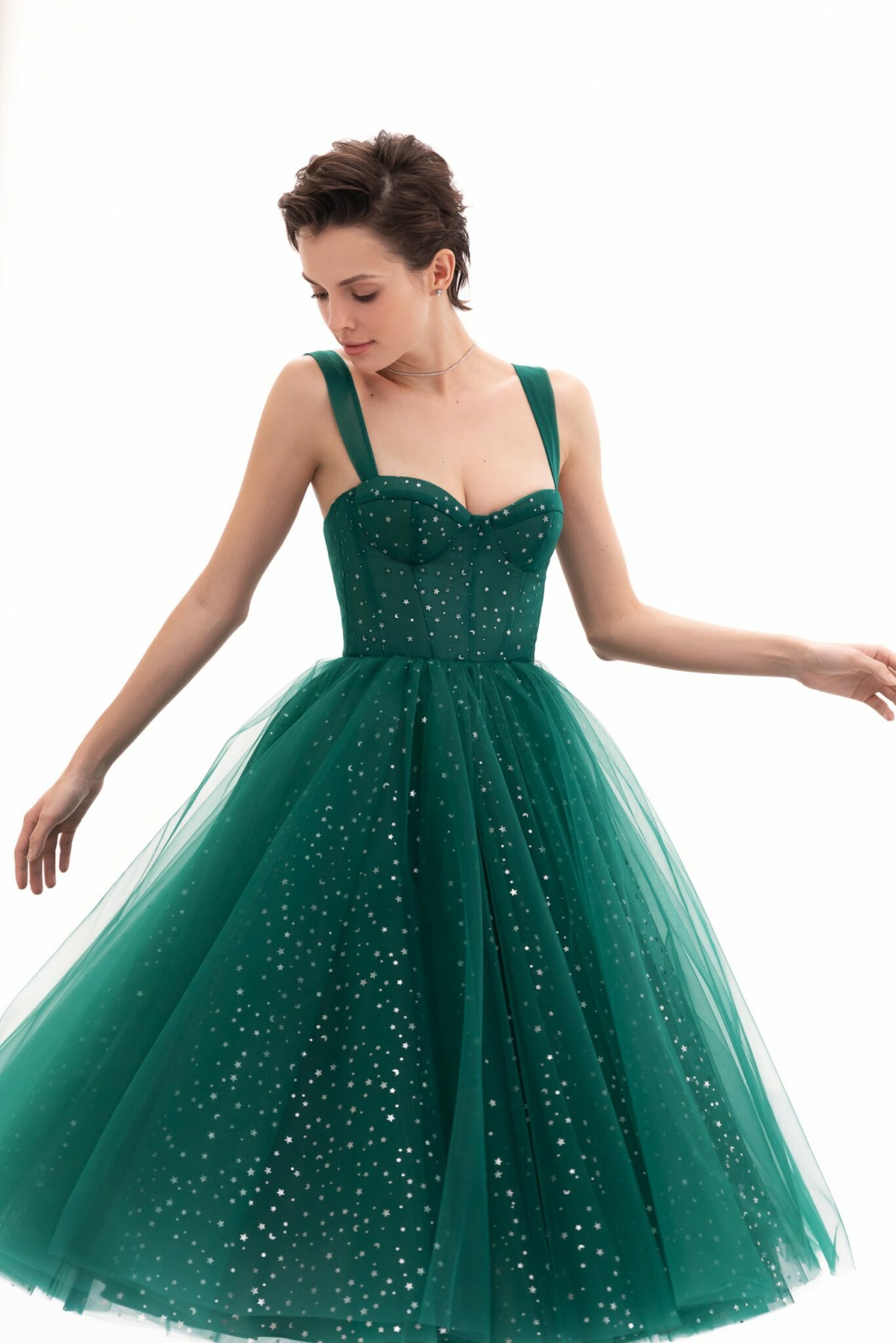 SS2022 Evening CollectionAn ode to modern elegance, the 22130 evening dress with its rich sparkle, tulle and a-line silhouette is a wardrobe masterpiece.