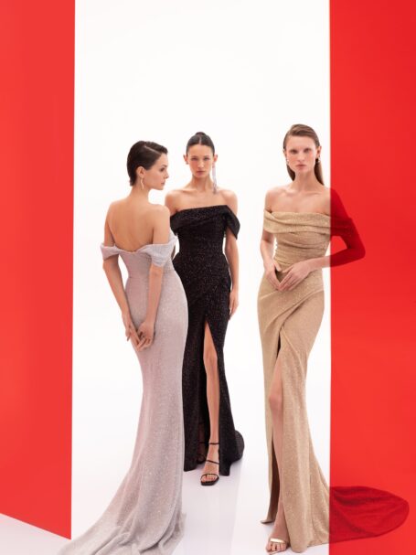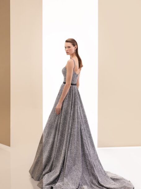 SS2022 Evening CollectionWith the 22135, make every entrance grand. The luxurious sparkle, tulle paired with its a-line silhouette makes it an unparalleled piece of art.
