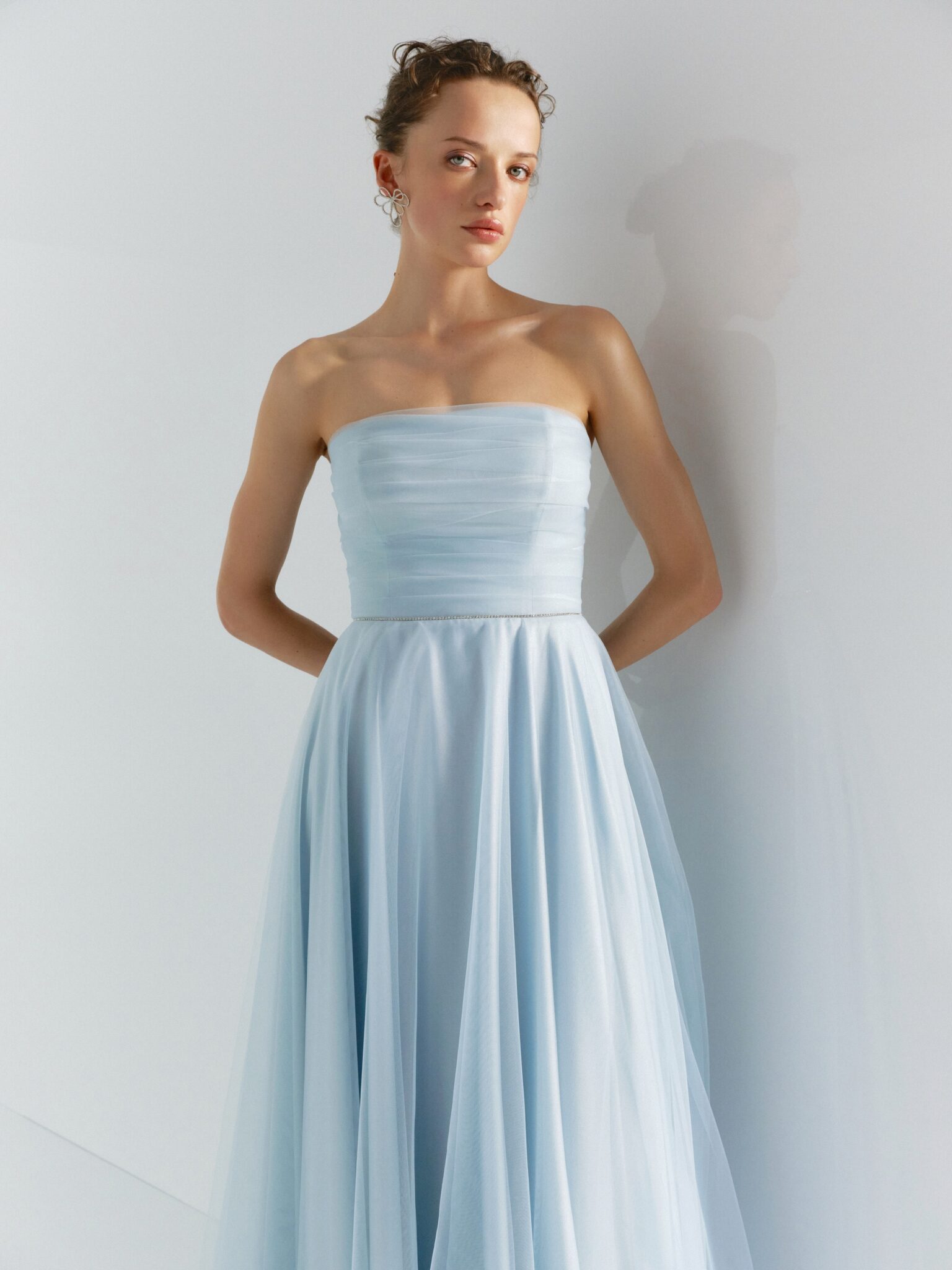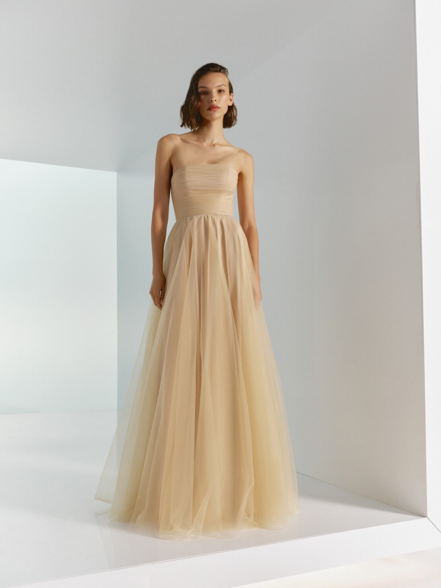 BridesmaidsRadiate grace and poise in this A-line dress. The gold, light green, light blue, yellow, ivory, black, red colors add a hint of romance, and the strapless neckline exudes style. The tulle fabric ensures comfort throughout the night, while the delicate detachable tulle cape bring a touch of allure. This dress is a perfect choice for an enchanting evening or as a bridesmaid attire.