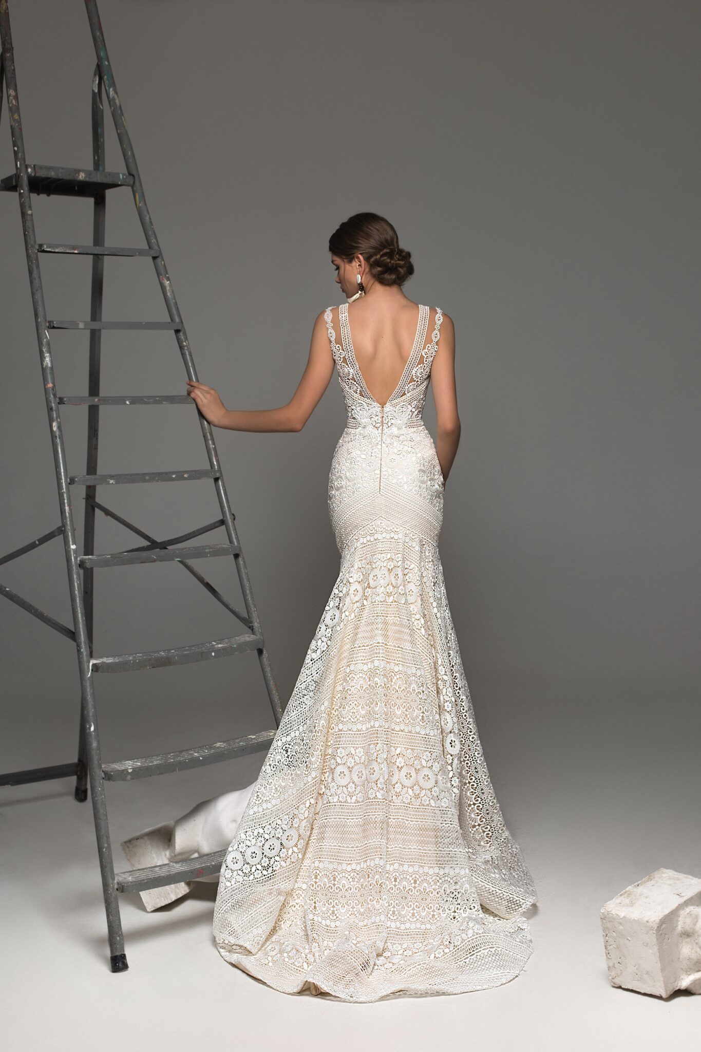 Bohemian FlowerStep into the spotlight with Addison. Its mermaid silhouette, draped in the luxury of lace, tulle, is all about opulence and grandeur. It’s a gown that promises to make the bride the star of her big day, capturing the essence of pure elegance.