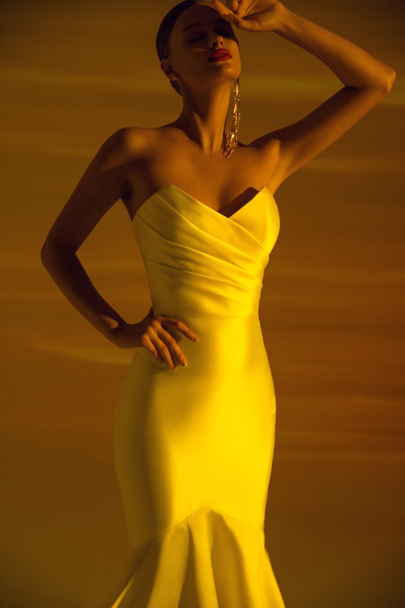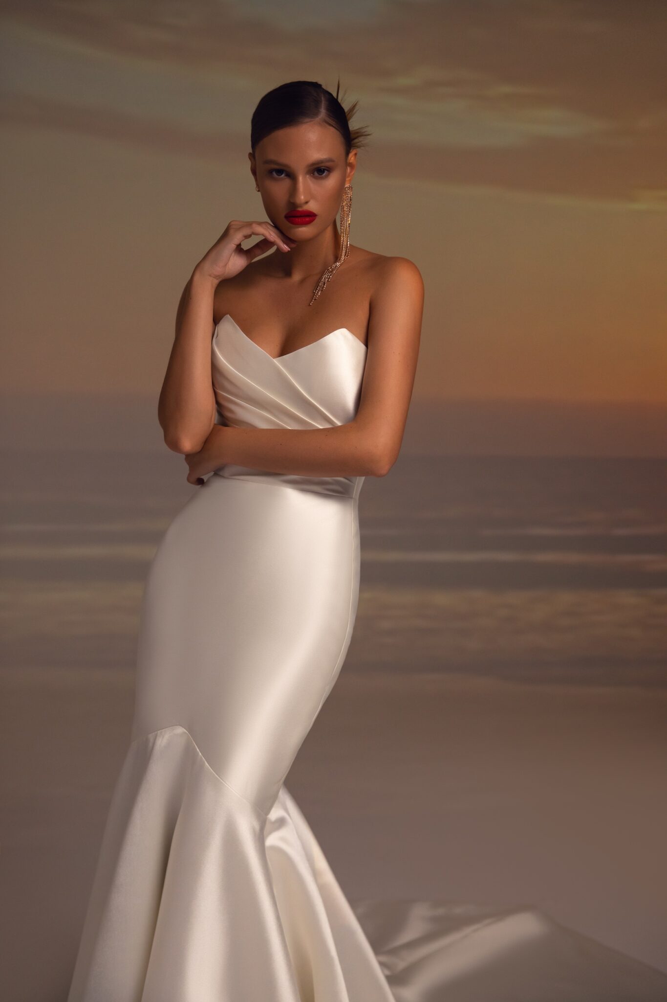 RebelEmbrace the world of luxury with Allure. Its mermaid silhouette, adorned with the best of mikado silk, is a testament to the art of bridal fashion. Every stitch is a promise of elegance, ensuring the bride feels like the queen she is.