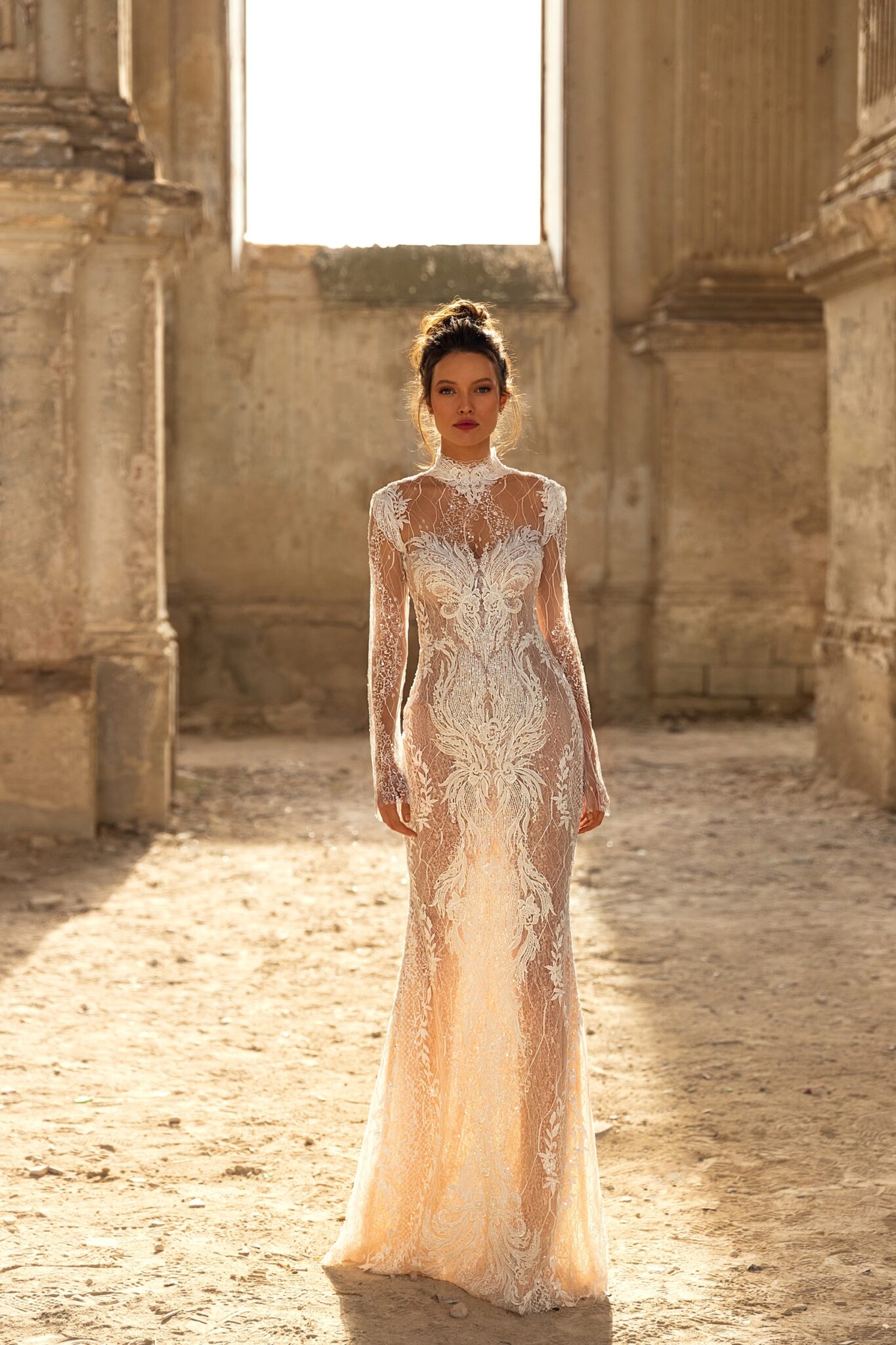 Golden Hour, Sample SaleBredley gown is mermaid tender dress with feminine lace sleeves. The wedding gown is made of luxurious lace. The majestic beck with make each bride bride look spectacular.