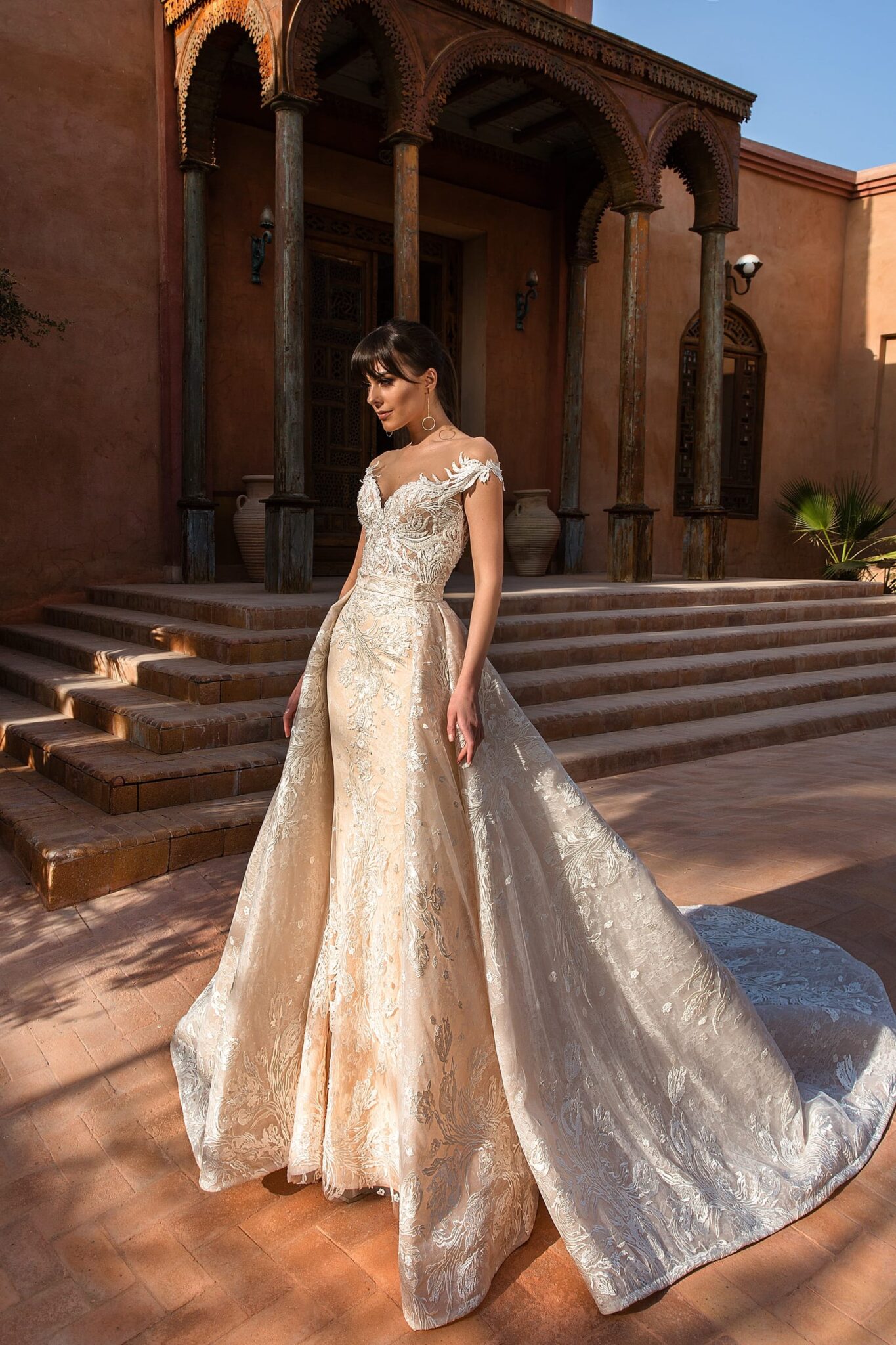 Low back wedding dress «Butterfly» with detachable skirt