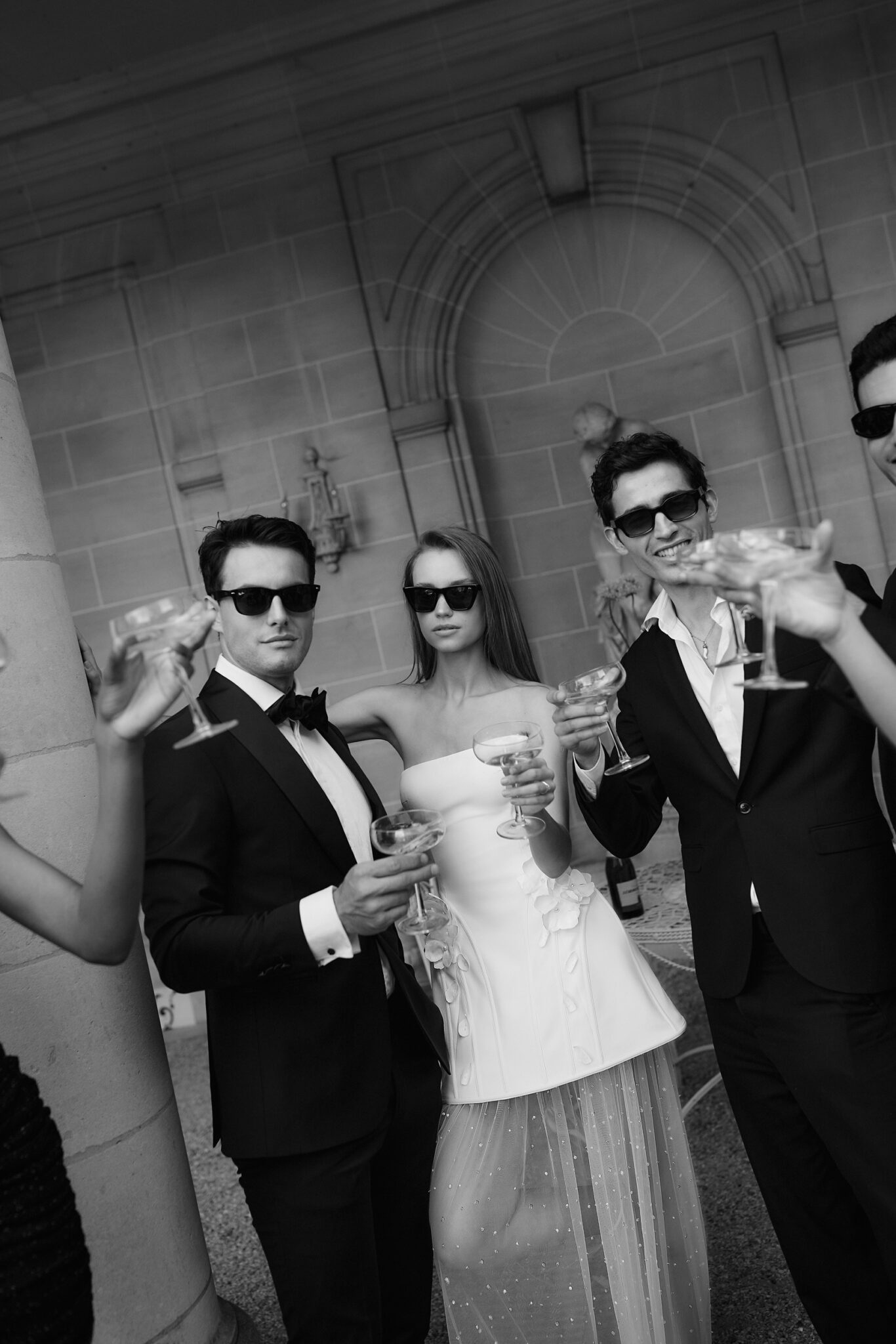 Love StoryStrapless dress with floral handcrafted embroideries on the hips. The shaped mini skirt, complemented with a sophisticated beaded maxi under-skirt made of tulle, adds a touch of playfulness to the attire.