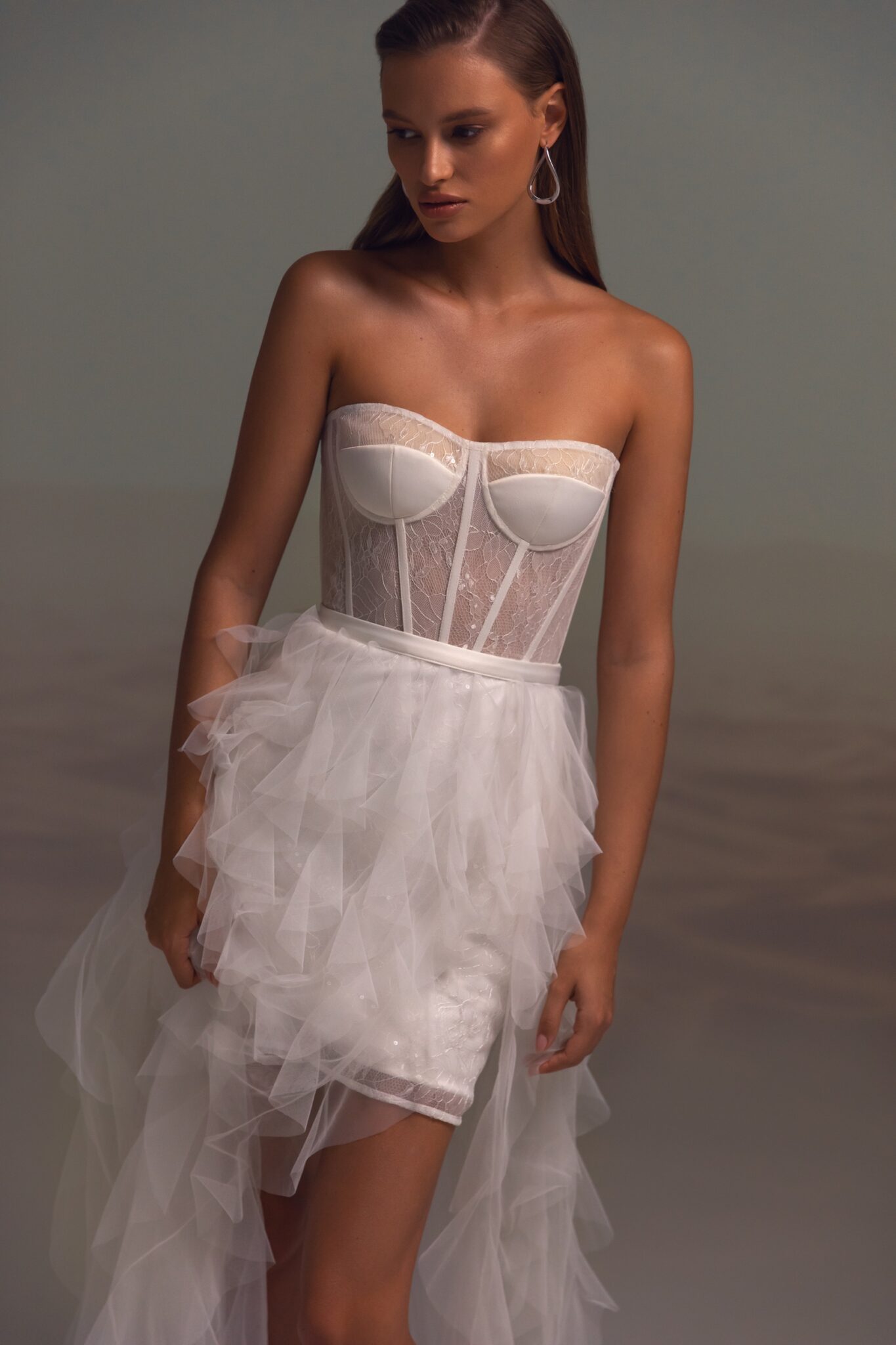 Straight wedding dress «Cheeky» with detachable overskirt