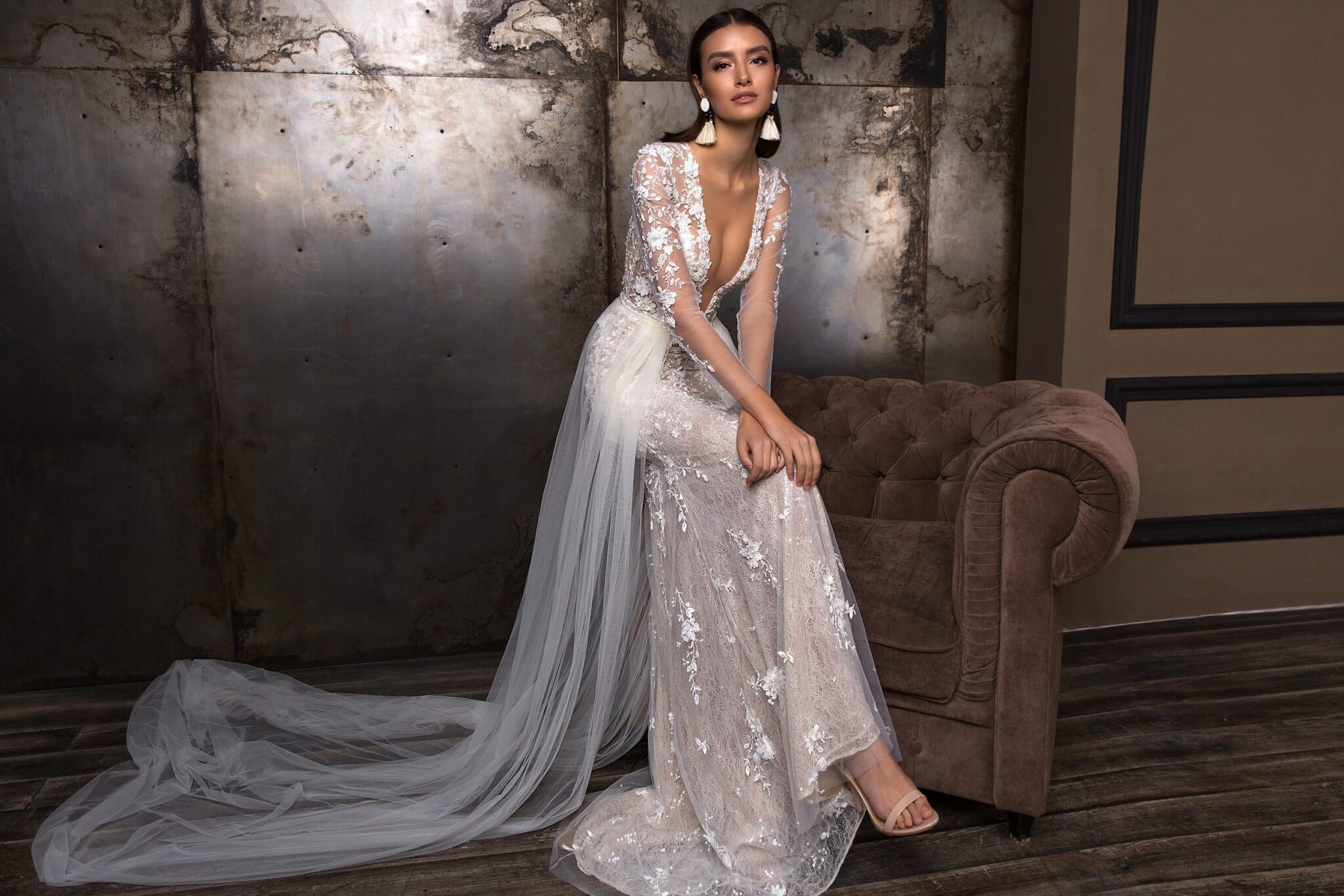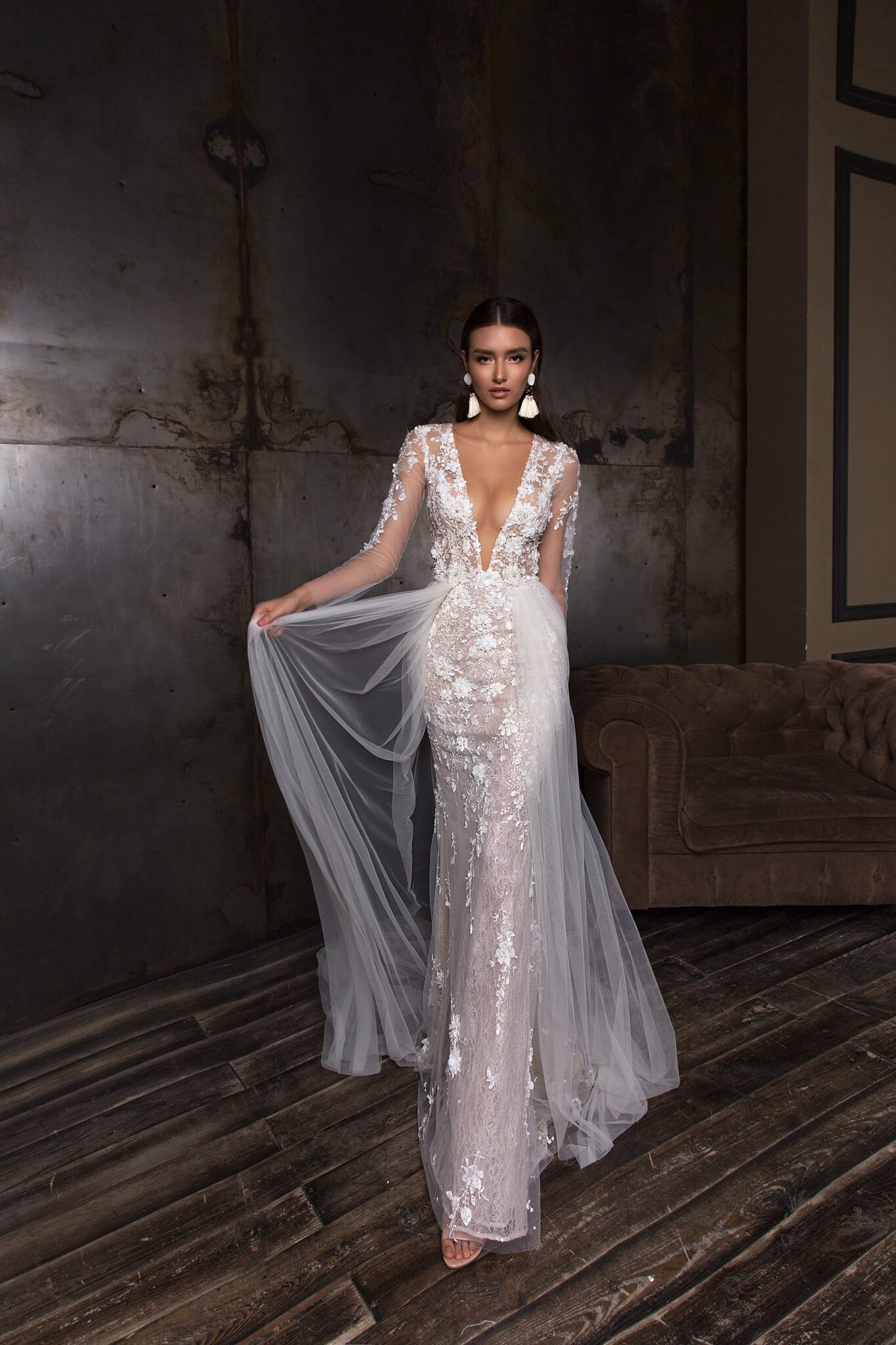 Closed wedding dress «Deli» with detachable overskirt