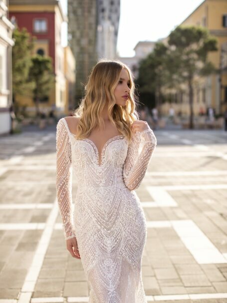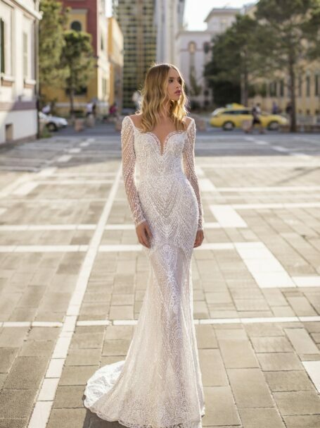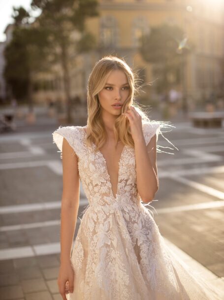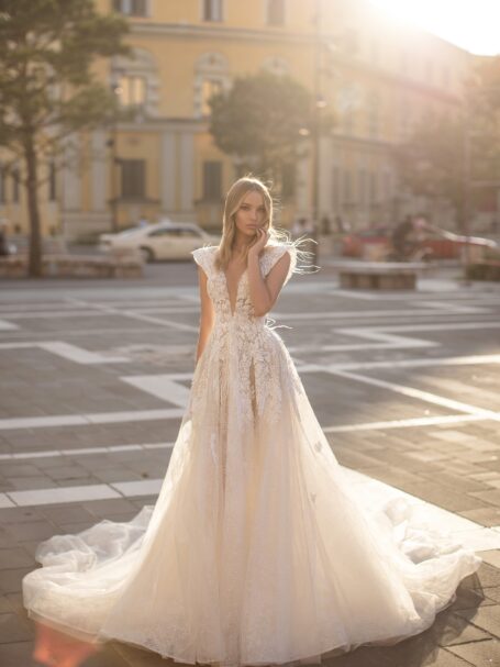 AuroraWith Diamond, bridal fashion reaches new heights. Its ball gown silhouette, draped in the luxury of lace, sparkle, is all about grandeur and sophistication. It’s a gown that promises to set the bride apart, making her big day even more memorable.