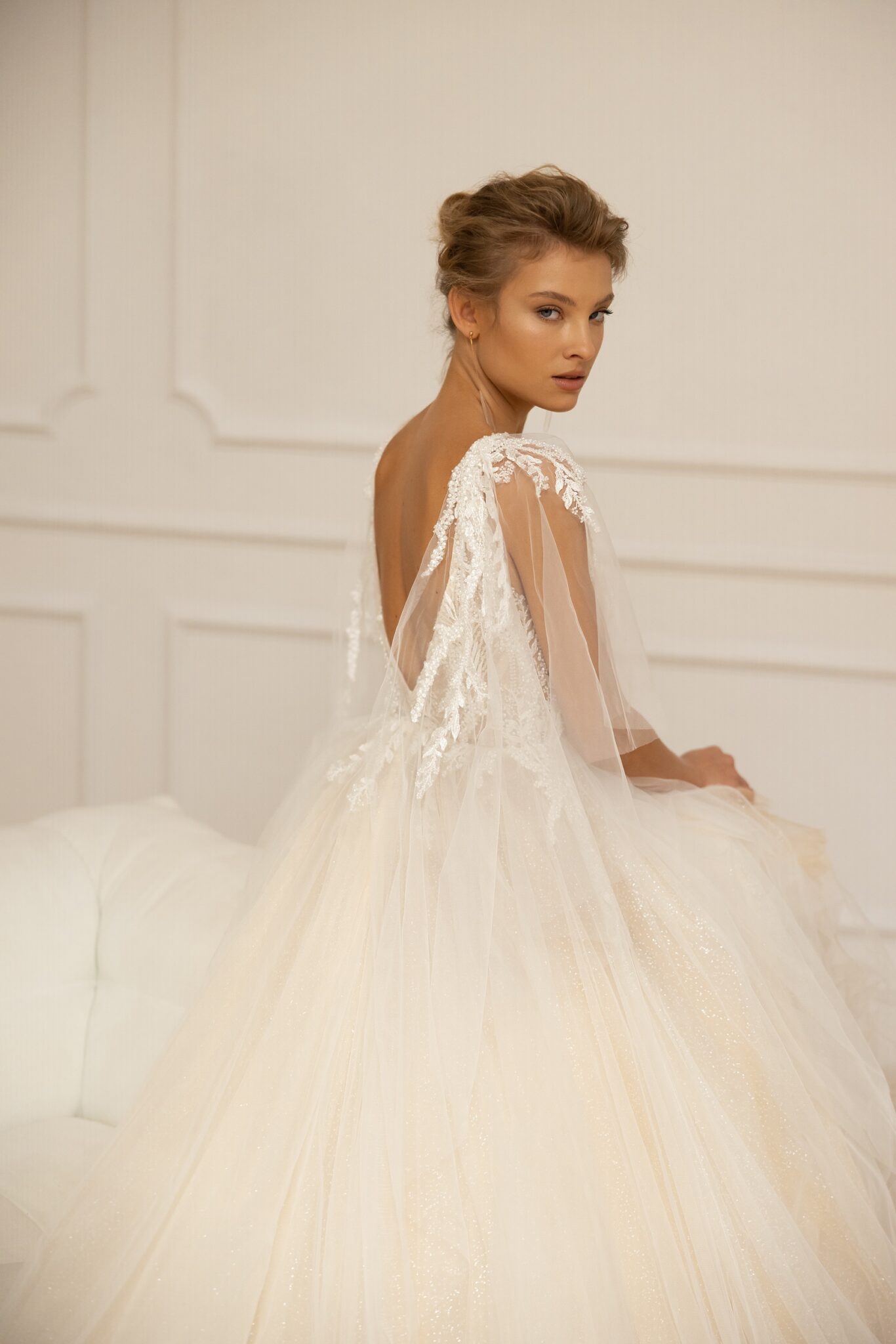 Low back wedding dress «Esmeray» with detachable sleeves