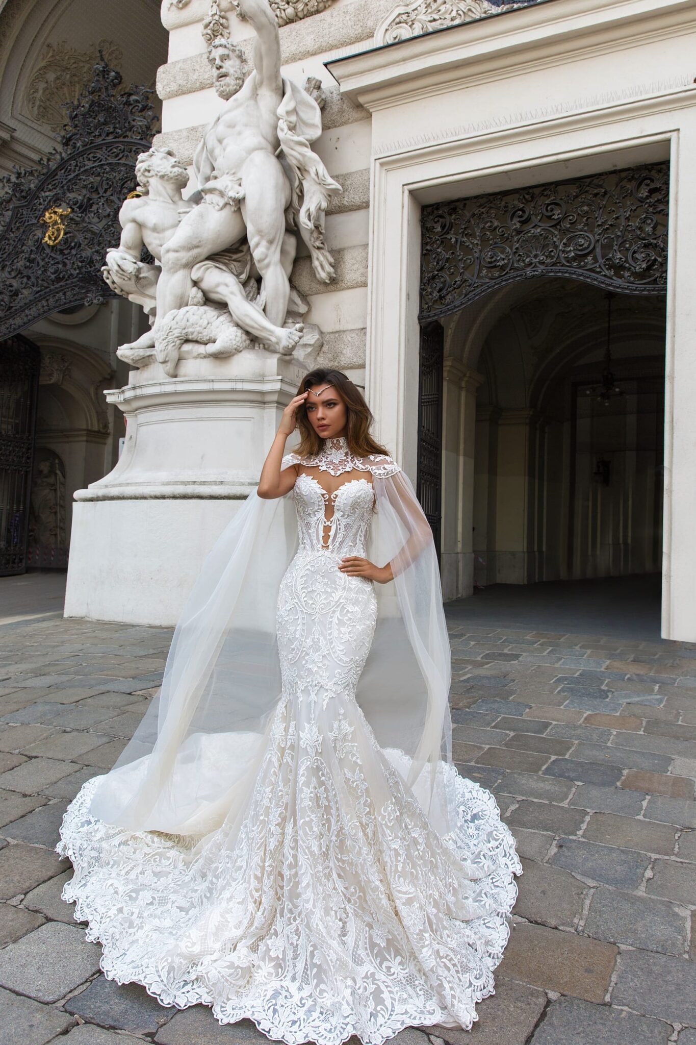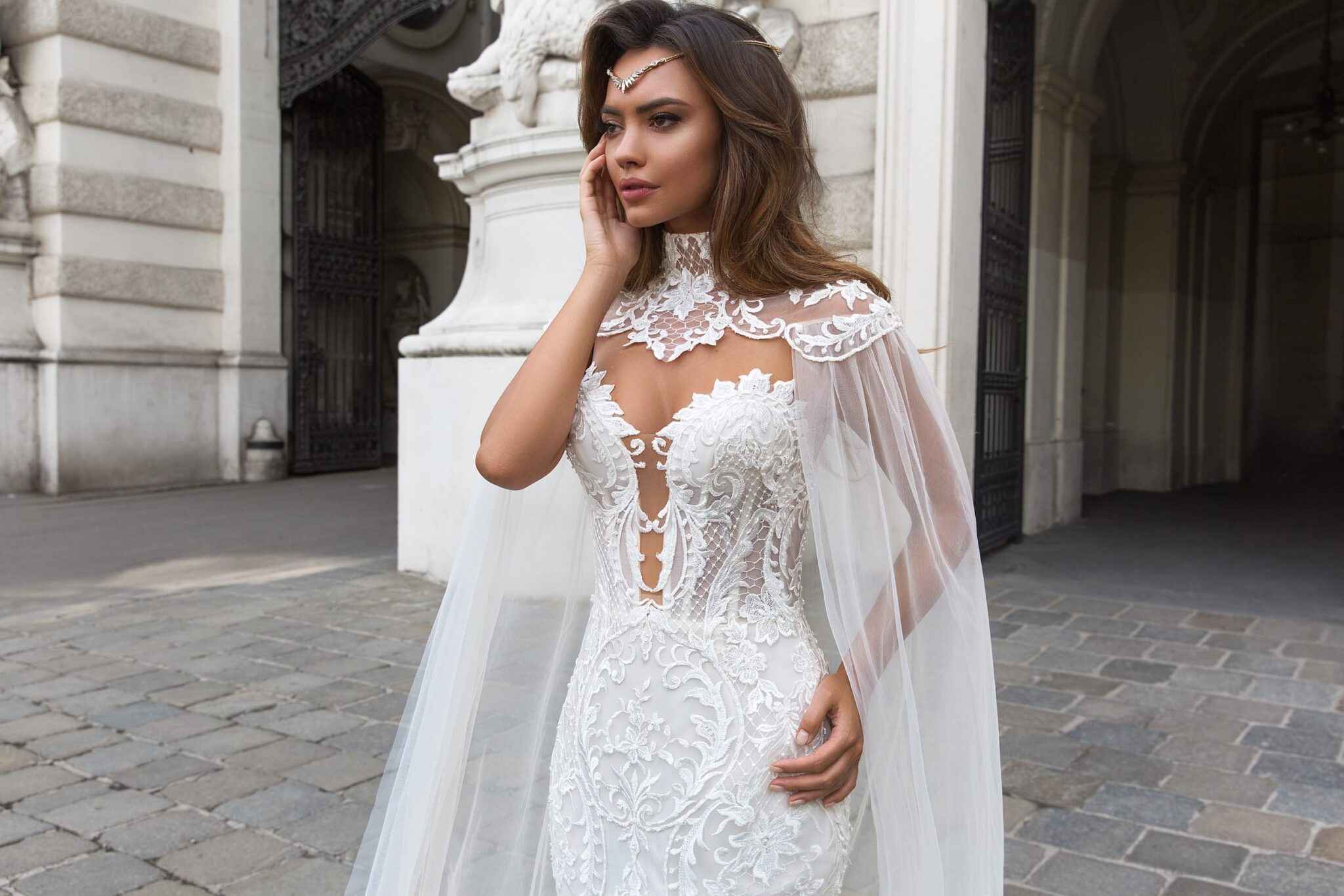 Buttons wedding dress «Gia» with detachable cape