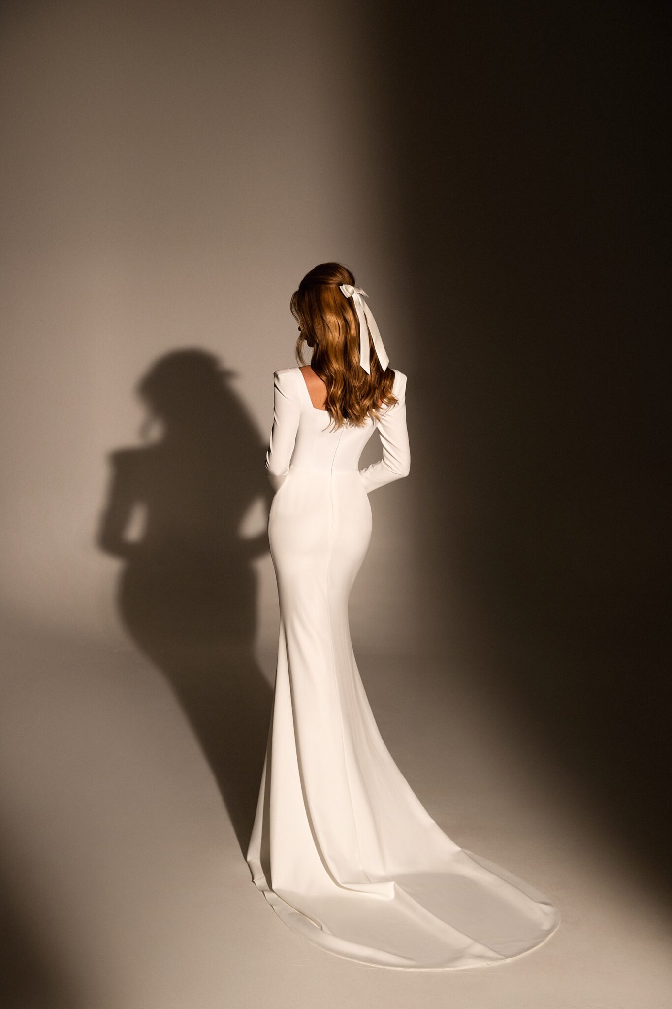 MuseLaconic Grazia wedding gown ismade by a combination of different elements. The dress itself is made of suits fabrics. Long sleeves are made this dress more elegant. A magnificent skirt passes into a long train.