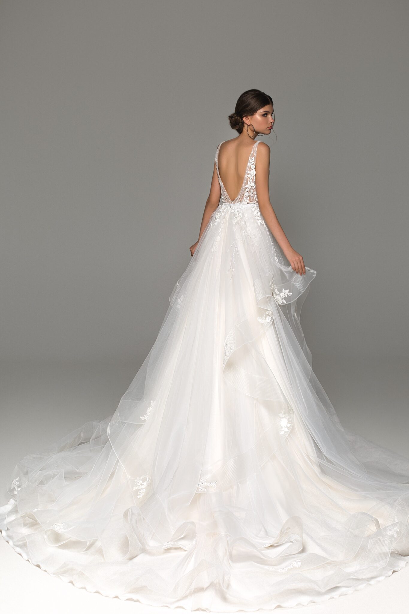 Low back wedding dress «Harlow» with detachable overskirt