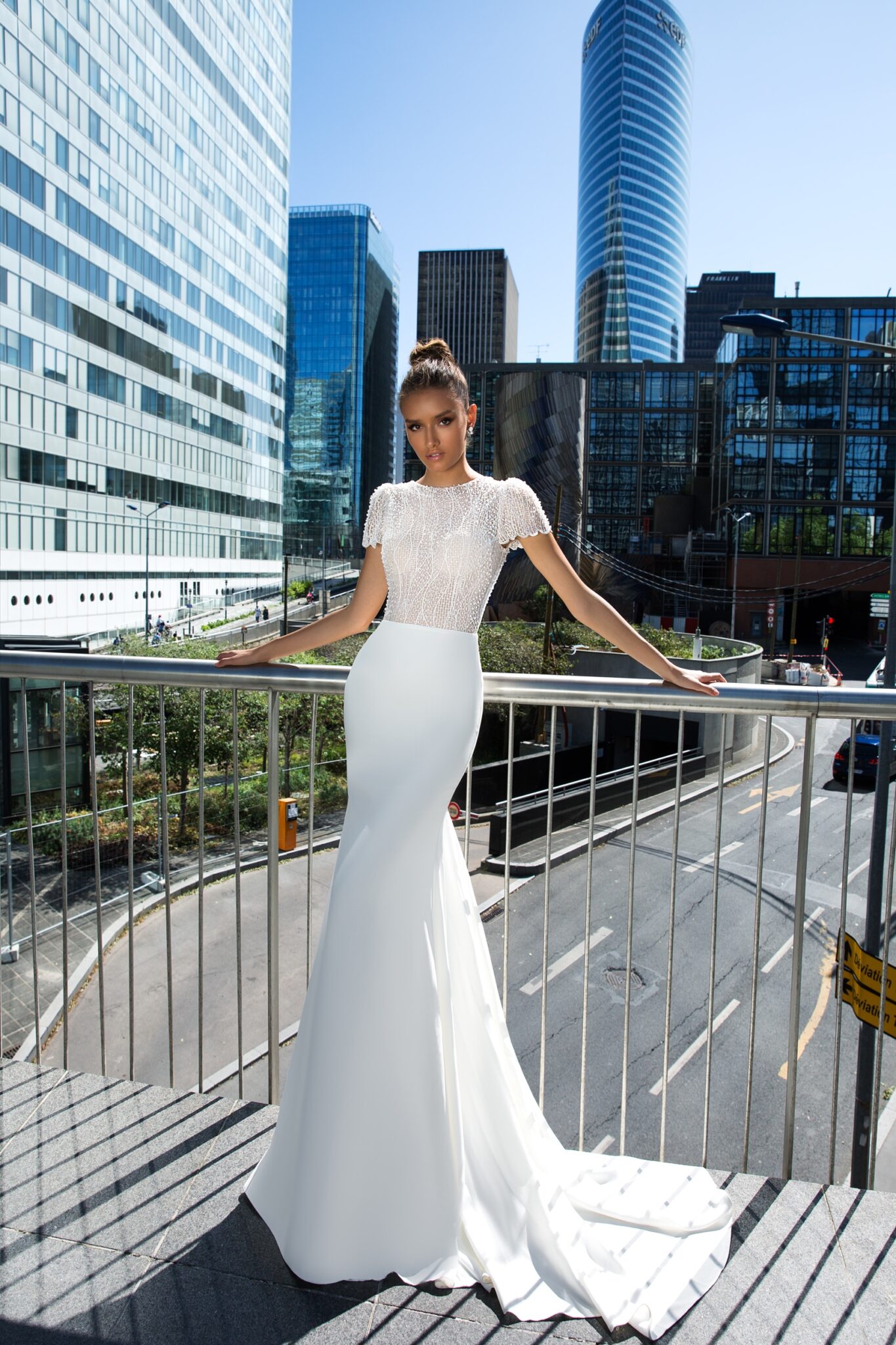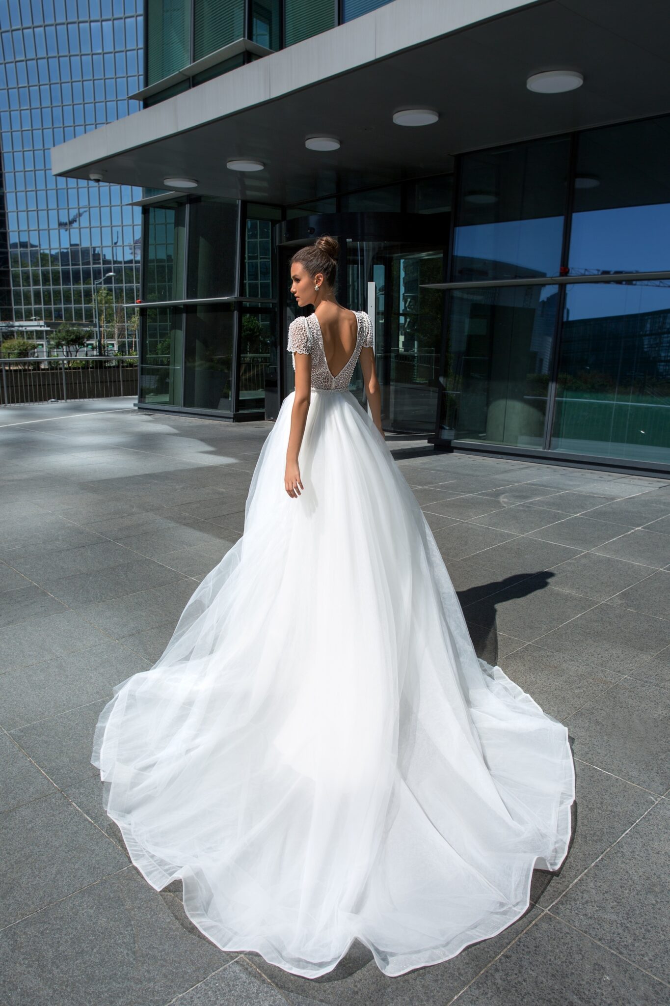 Low back wedding dress «Jaine» with detachable skirt