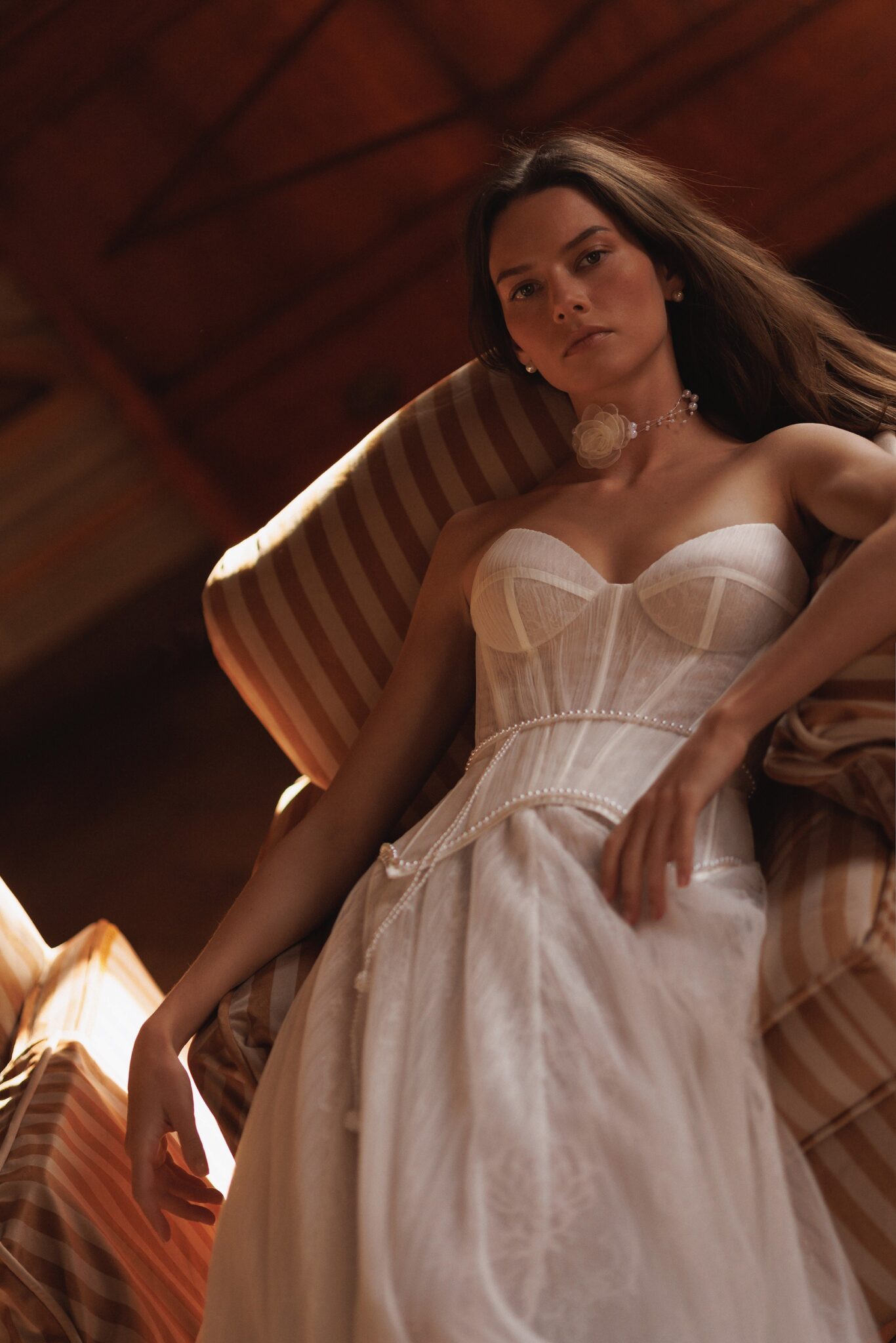 L'UnicoPearled waistline and bottom of the heart-shaped neckline detailed corset with a skirt descending from underneath the corset.