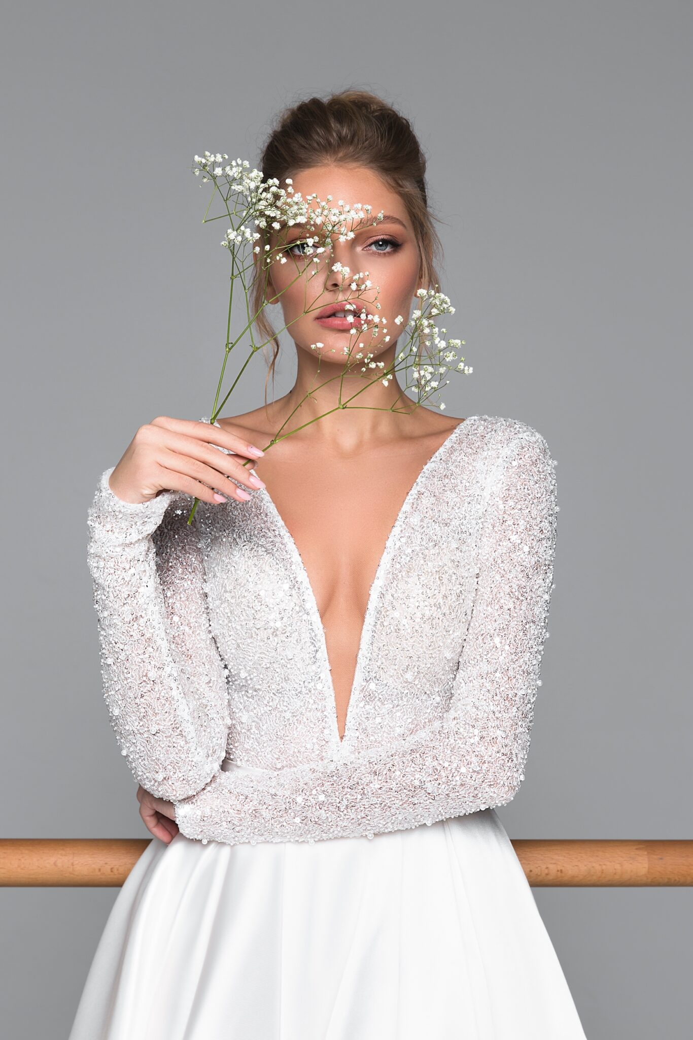 Closed wedding dress «Kylie» with shoulder pads