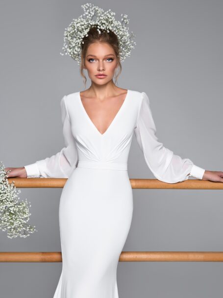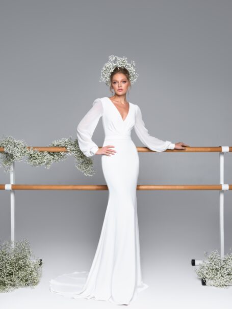 Less is more 2019Elegance redefined – that’s Lory for you. Its stunning a-line silhouette, draped in the luxury of crepe, tulle, is a testament to the art of bridal couture. Every stitch speaks of its grandeur, promising a bridal look that’s truly spectacular.