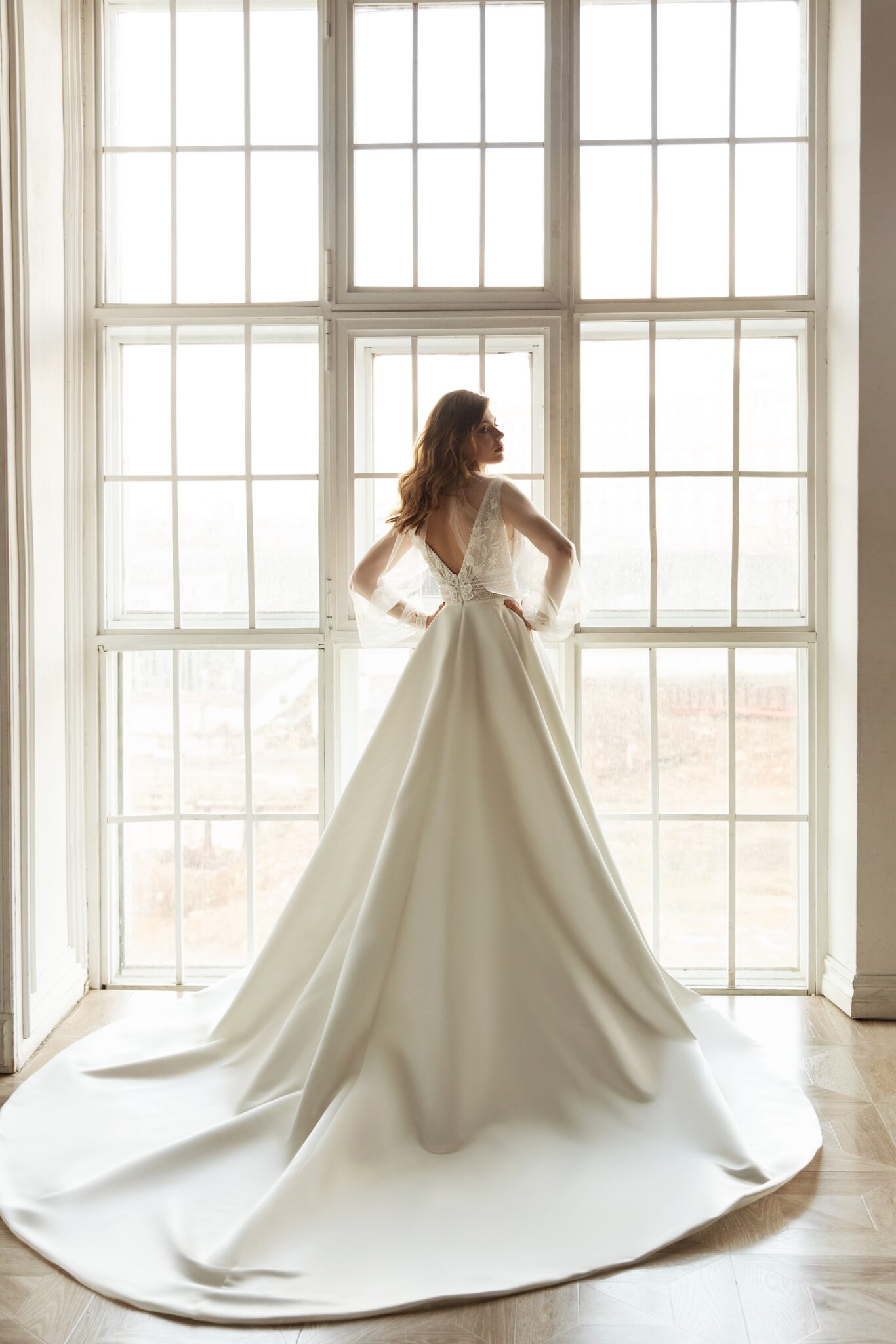 Less is more 2021Elegance, grandeur, and a touch of fairy-tale charm – that’s what Marnie promises. This gown, beautifully crafted in a flattering nan silhouette and adorned with the softest lace, satin, sparkle, tulle, is a testament to what happens when art meets fashion in bridal couture.