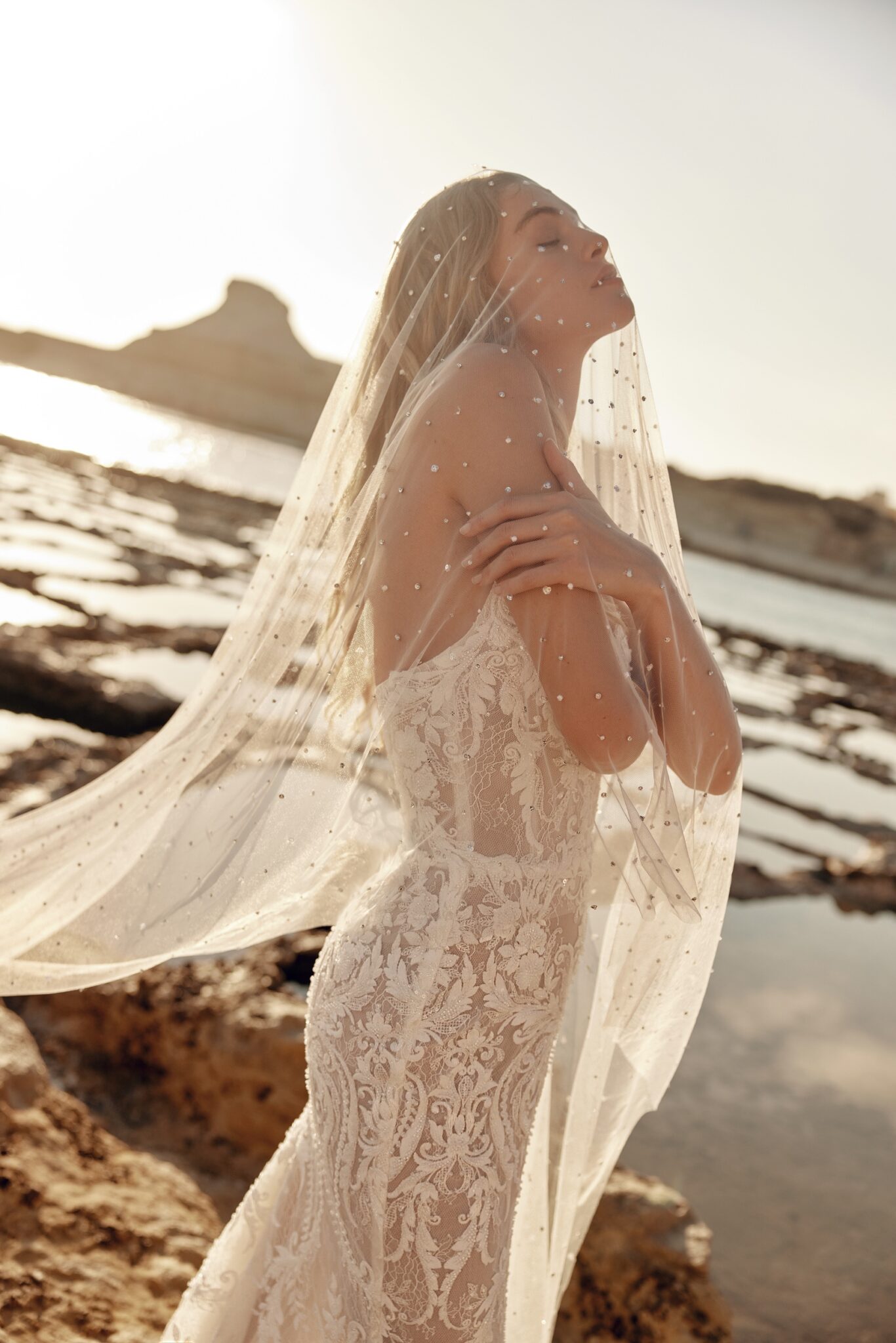 SirenityMoonlit gown is a romantic masterpiece, fully adorned with delicate lace from top to bottom.
