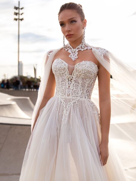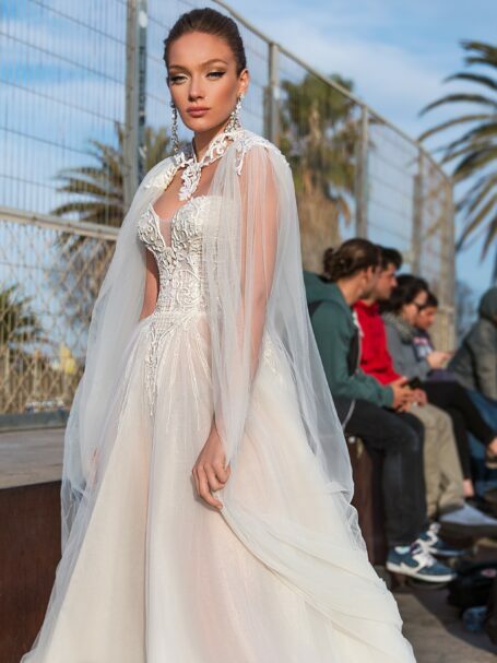 DivaDiscover the magic of bridal couture with Navarra. Its enchanting ball gown silhouette, paired with the softness of lace, mikado silk, sparkle, ensures a look of regal sophistication. Every bride deserves to look and feel her best, and this gown promises just that.