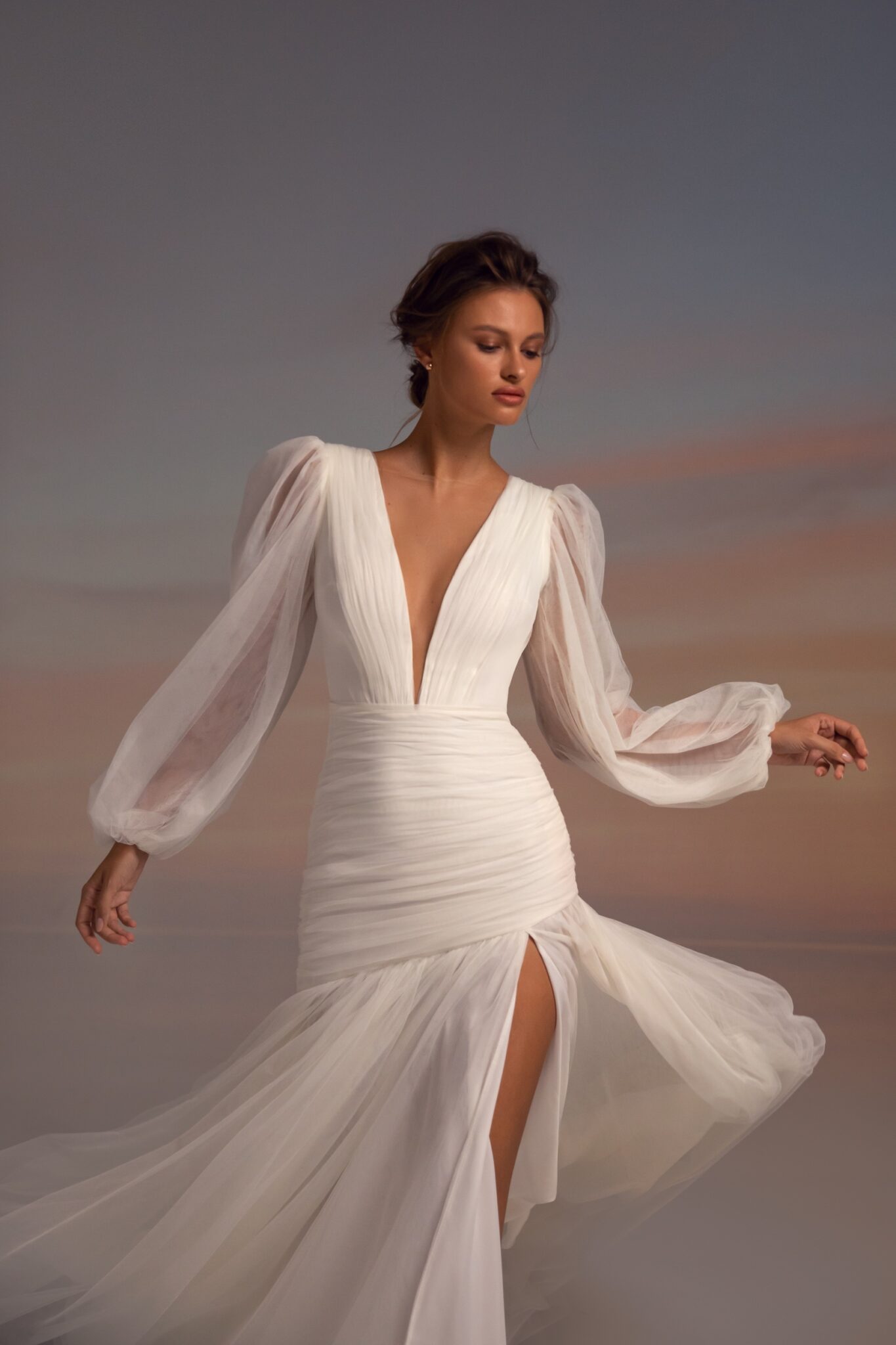 Low back wedding dress «Nutty» with slit