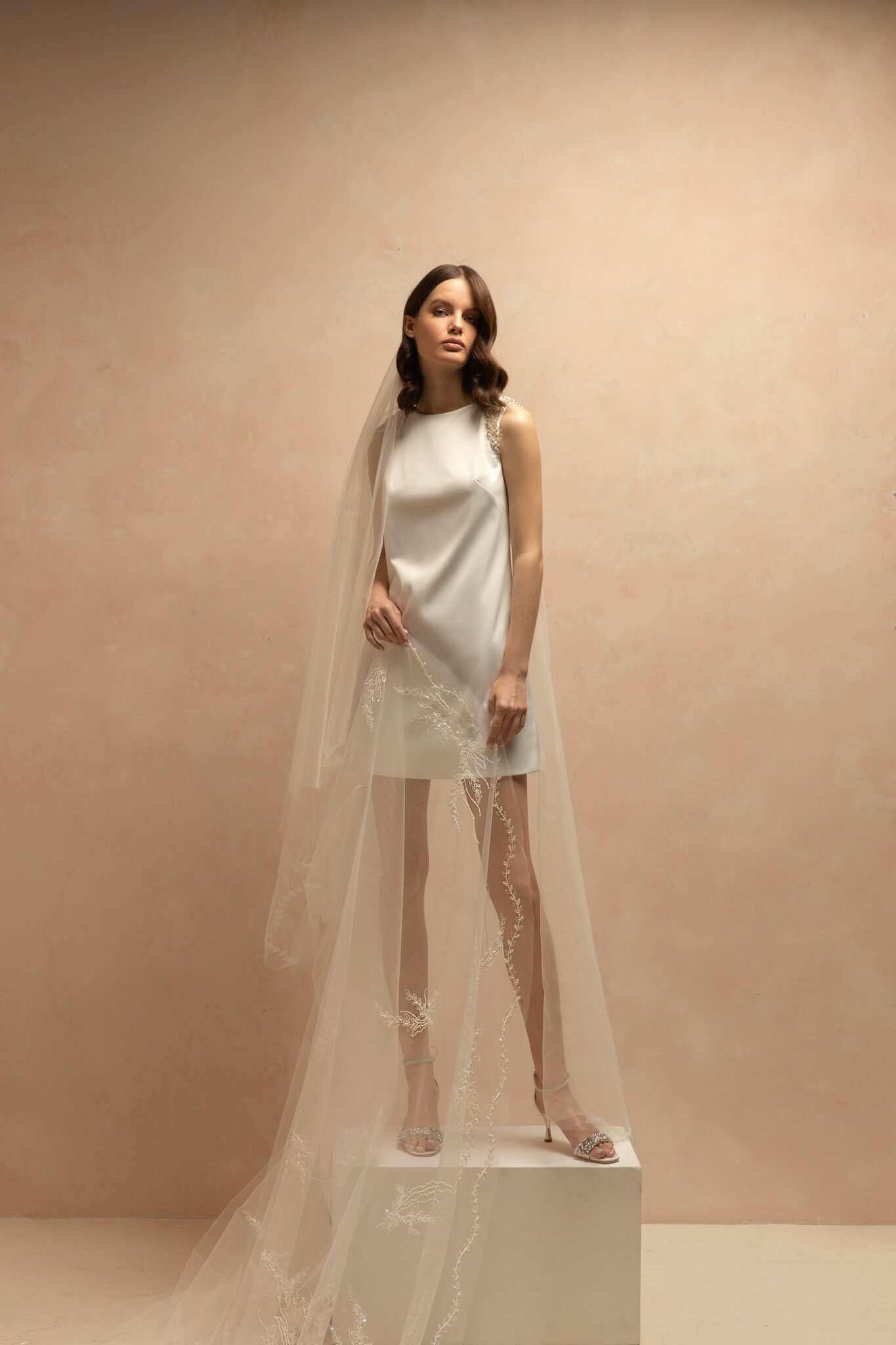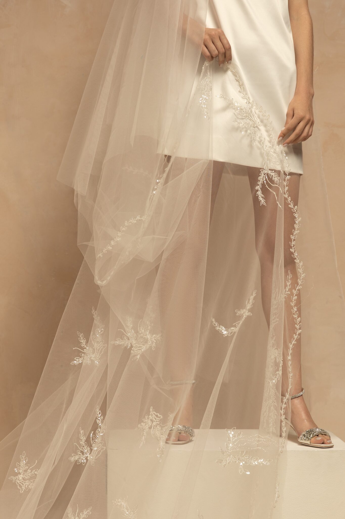 VeilsBeautiful minimalistic single-tier bridal veil made of tulle and decorated with sequins through all length. Available in cathedral length.