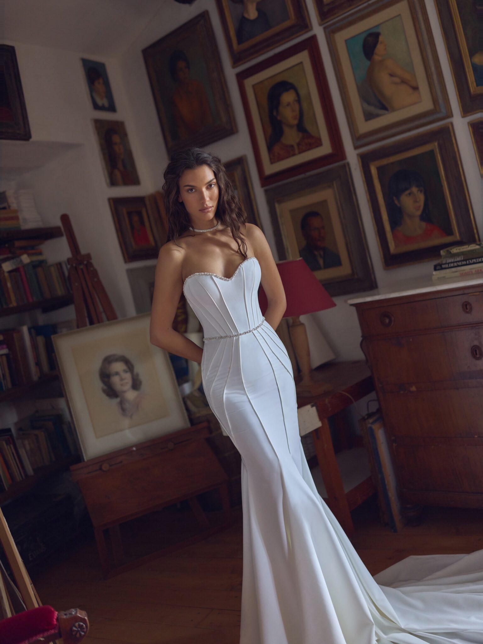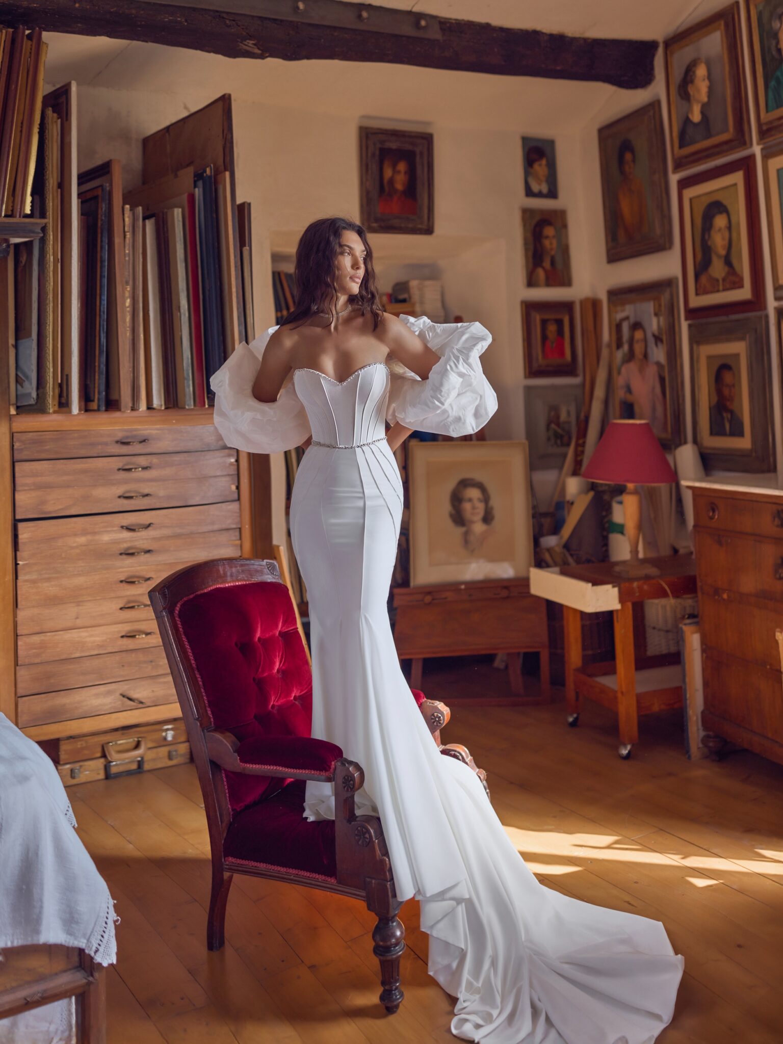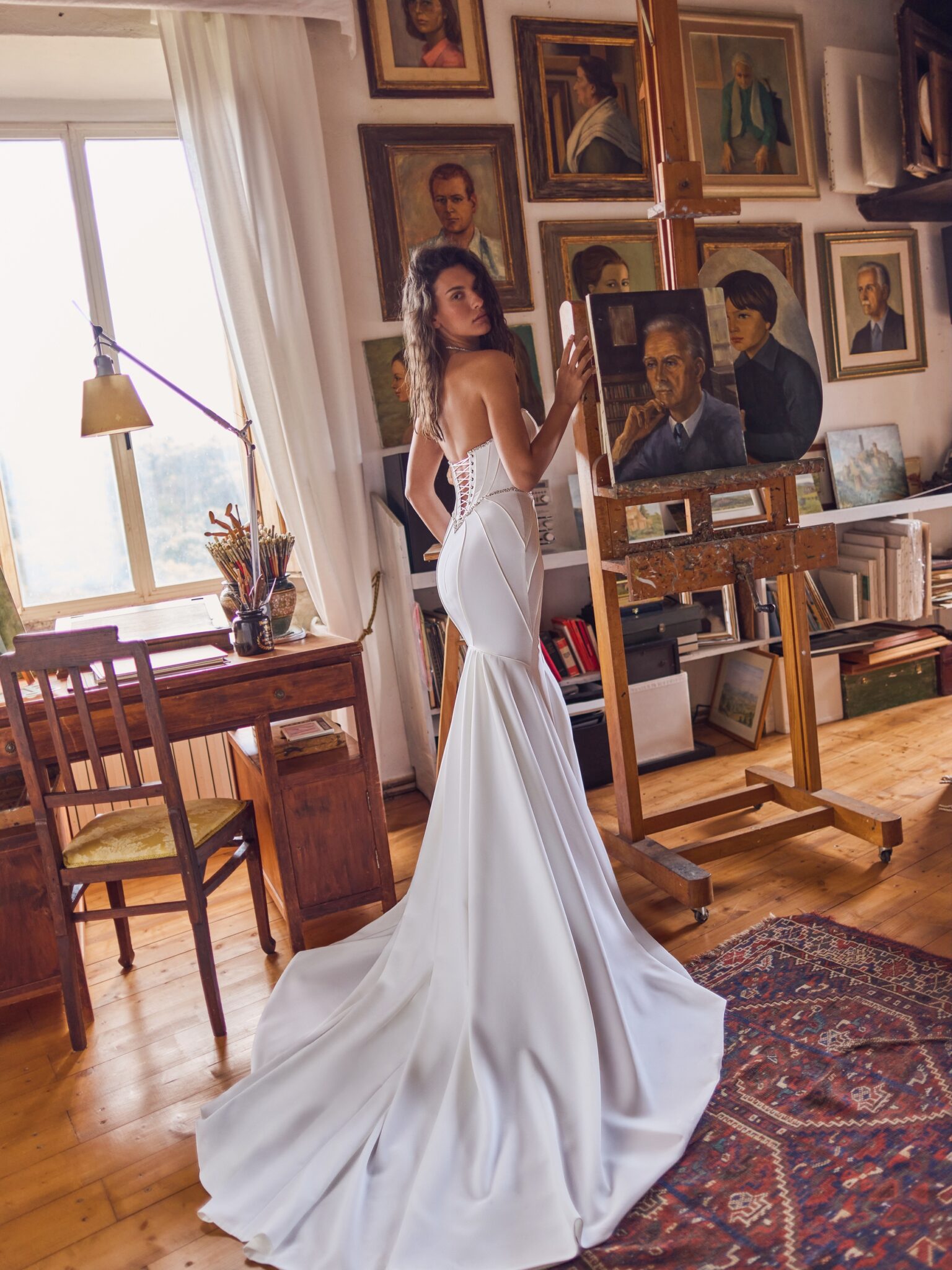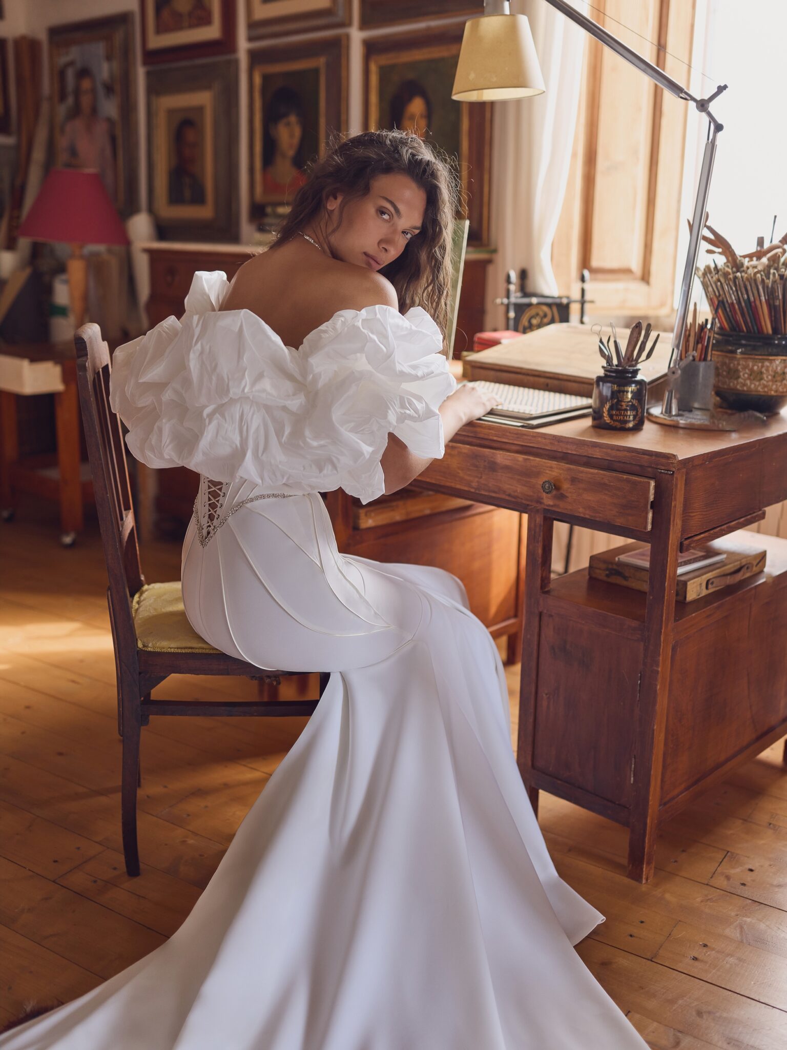 A magnificent train completes the ensemble, flowing elegantly behind the bride and leaving a lasting impression. The Odisea is a true celebration of confidence, power, and modern luxury.