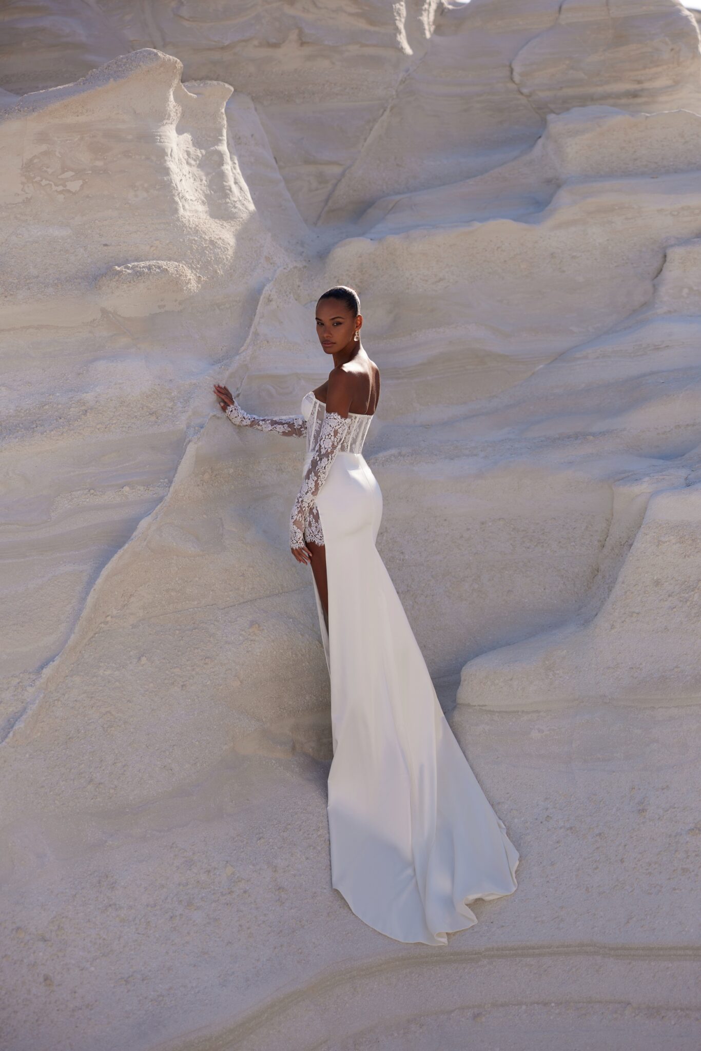 Straight wedding dress «Porta» with detachable sleeves