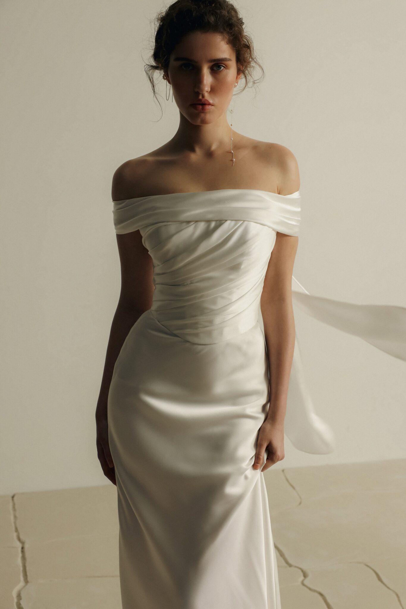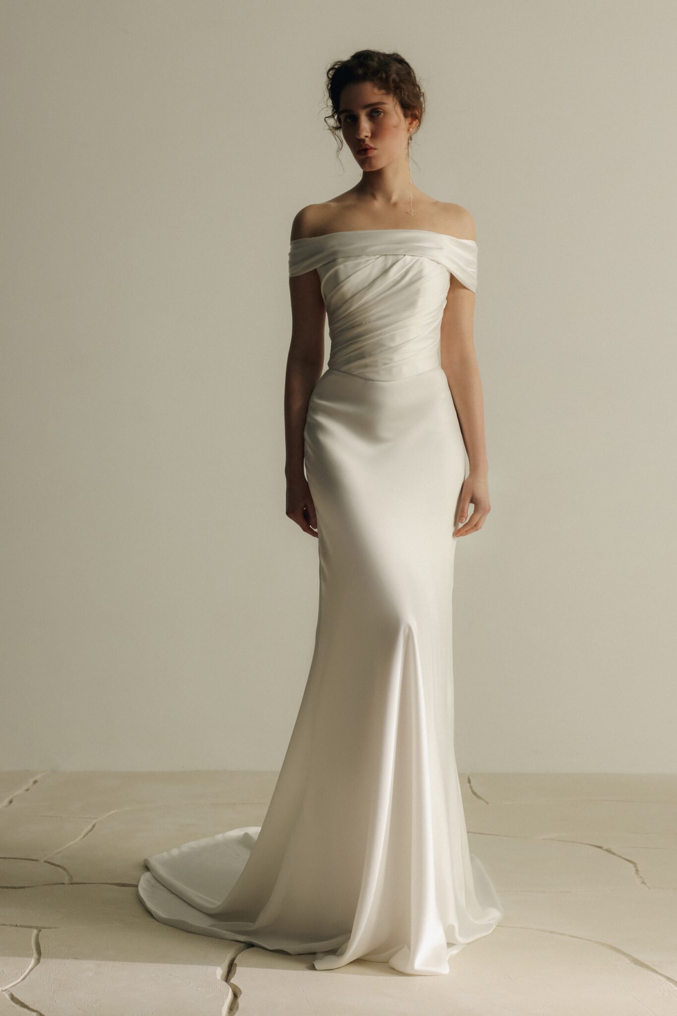 Kiss of SilenceThe Reef gown is a minimalist mermaid silhouette, crafted from lightweight satin in a soft light ivory shade.