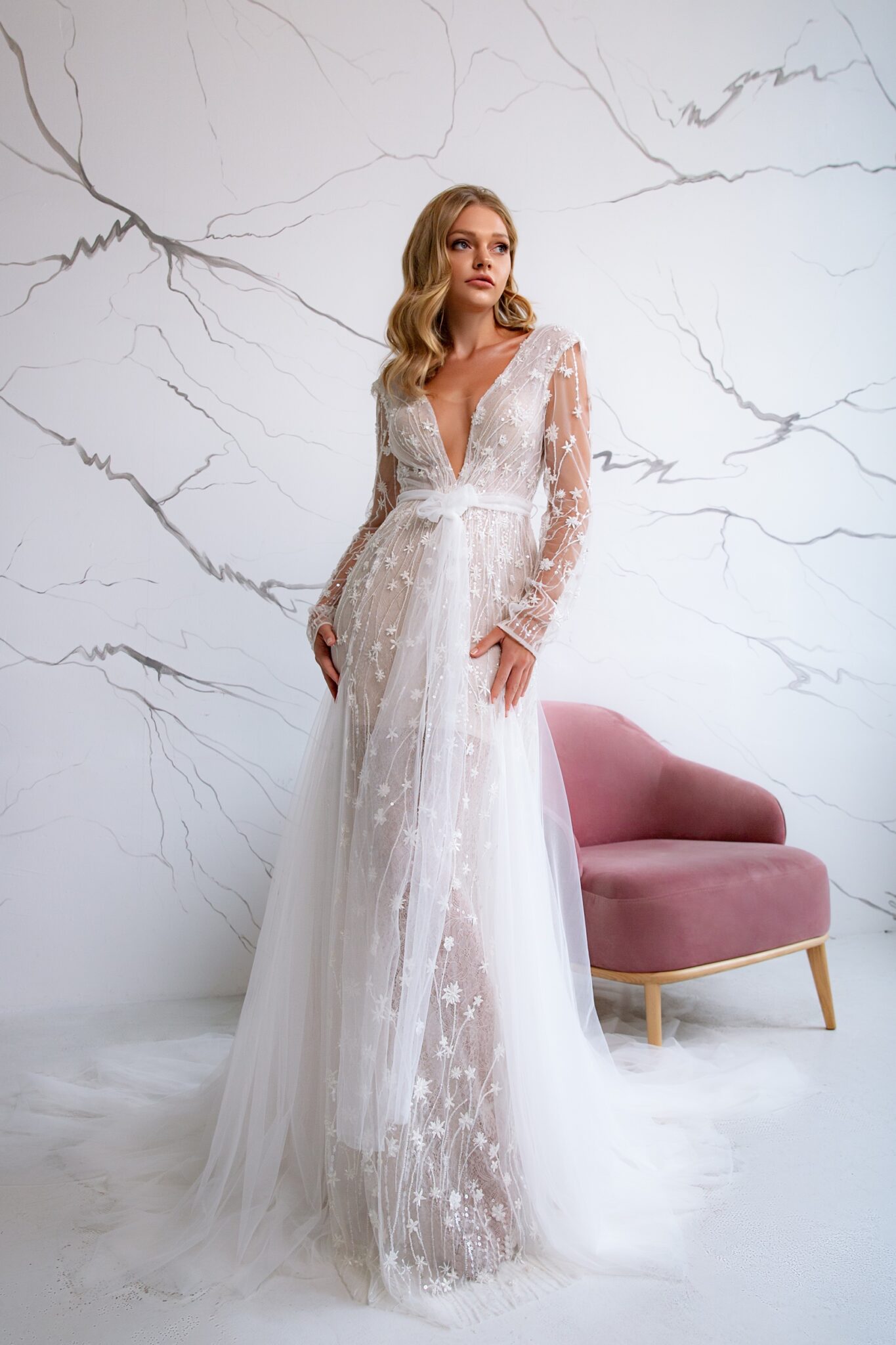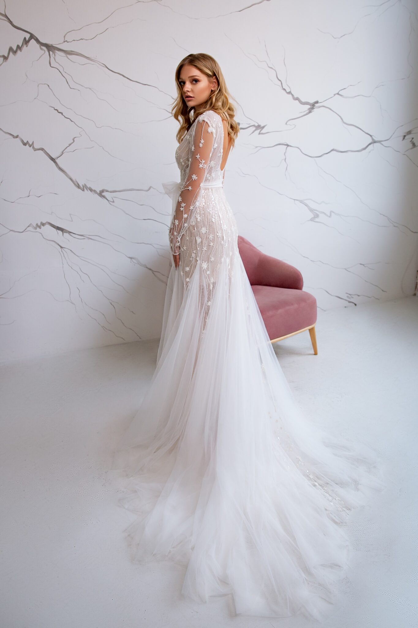 Low back wedding dress «Remi» with belt