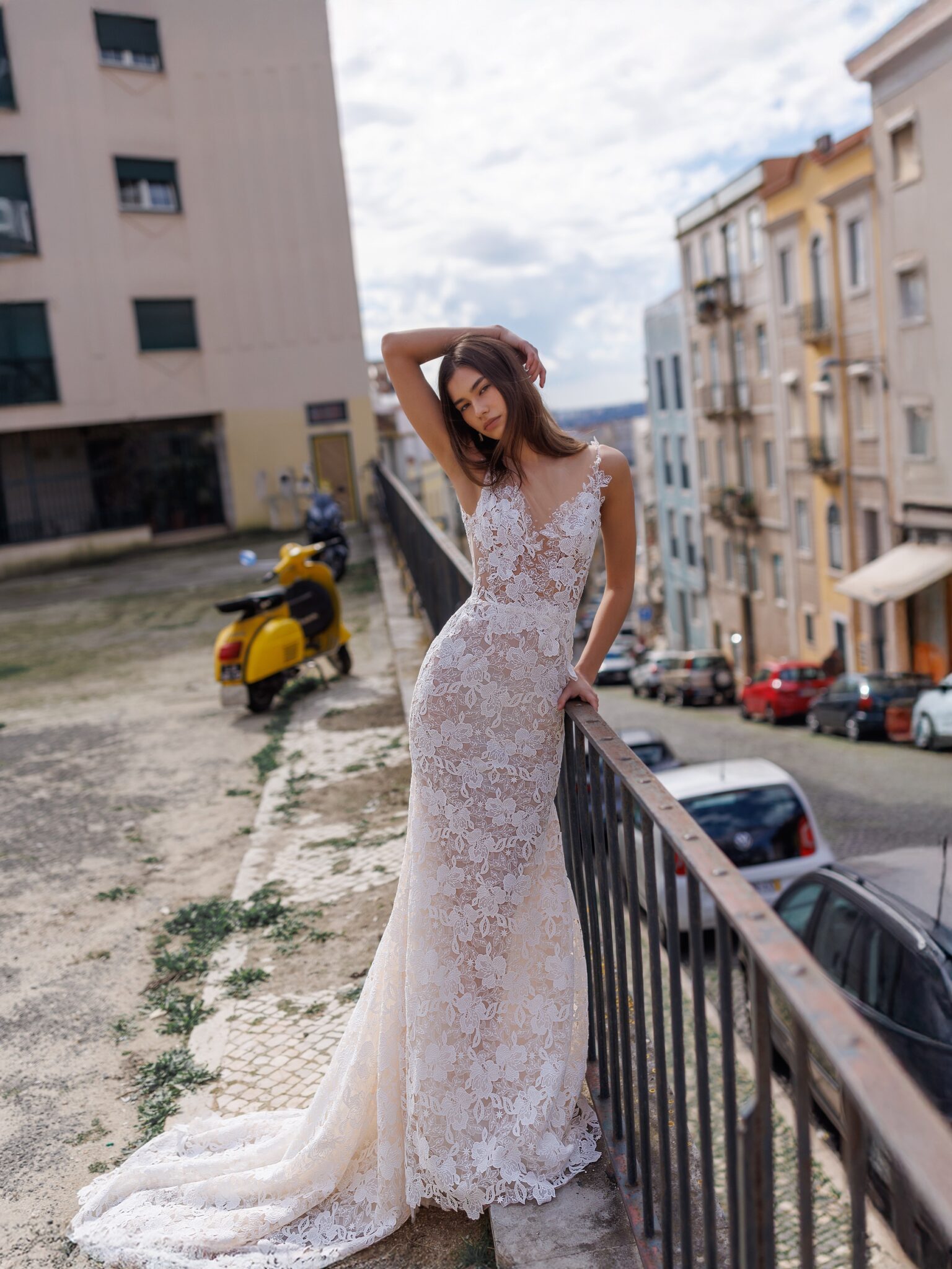 Bridal AlchemyRenee gown is a captivating mermaid silhouette designed to highlight the bride’s figure while offering a versatile and romantic touch.